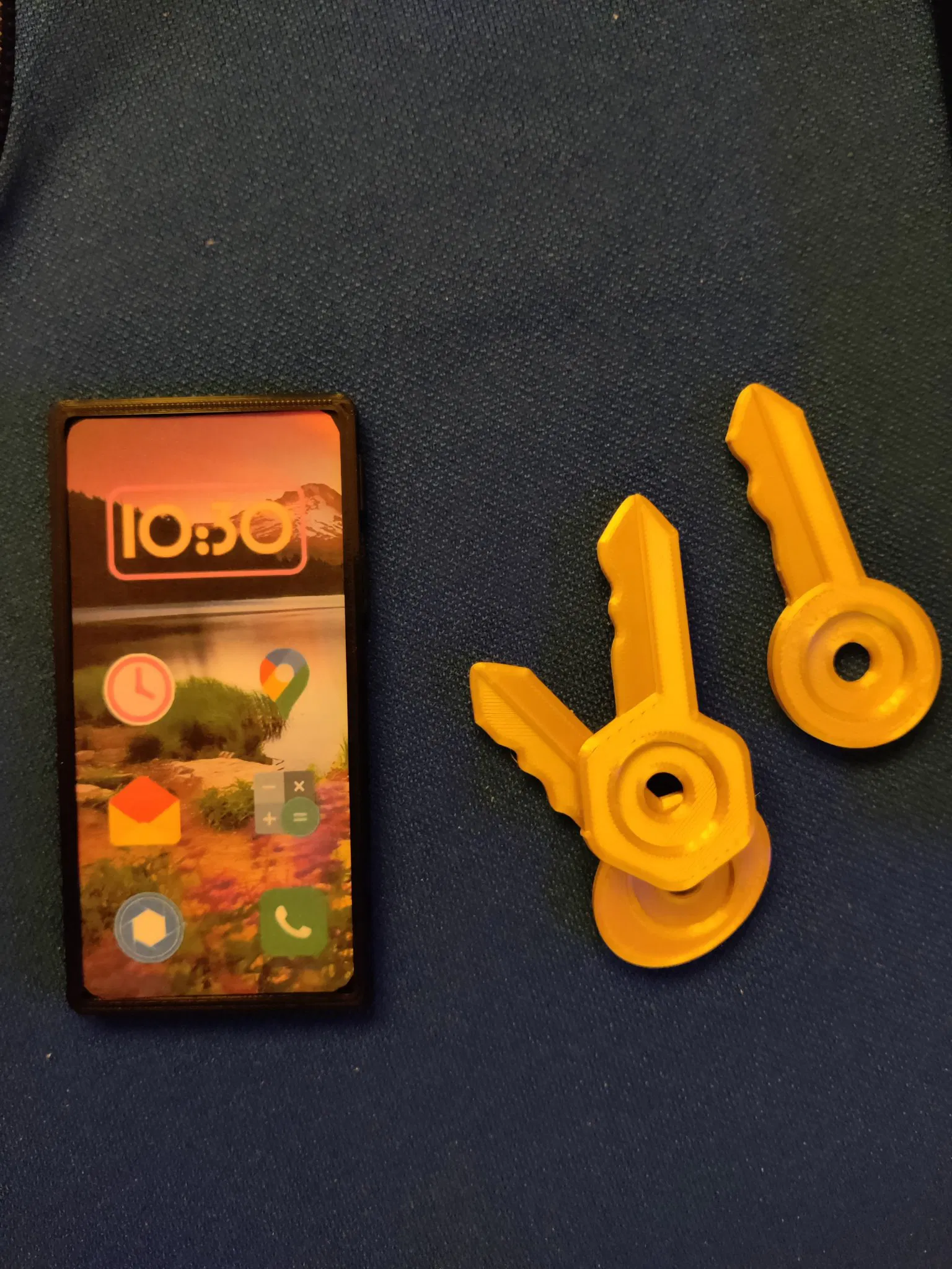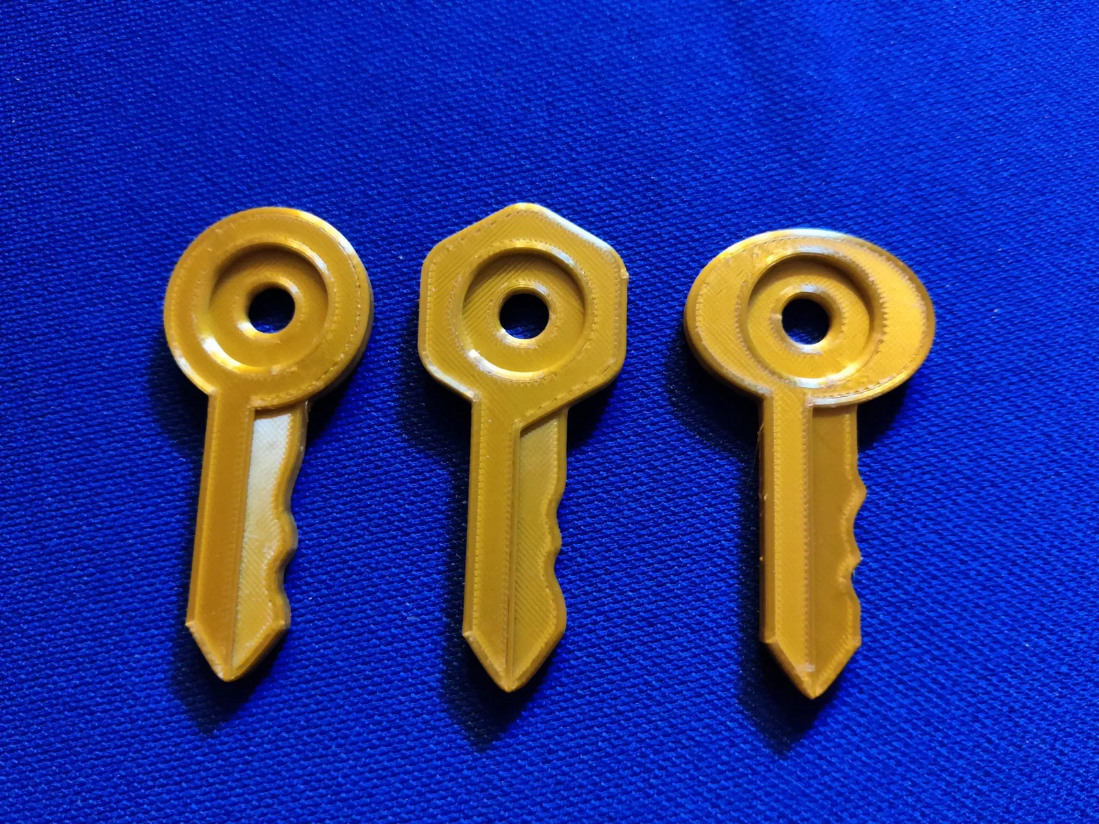 Bộ chìa khóa gồm ba cái chìa khác nhau; bạn có thể in bằng sợi giả kim loại hoặc sợi màu.
