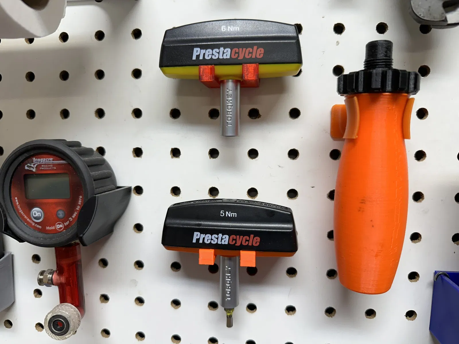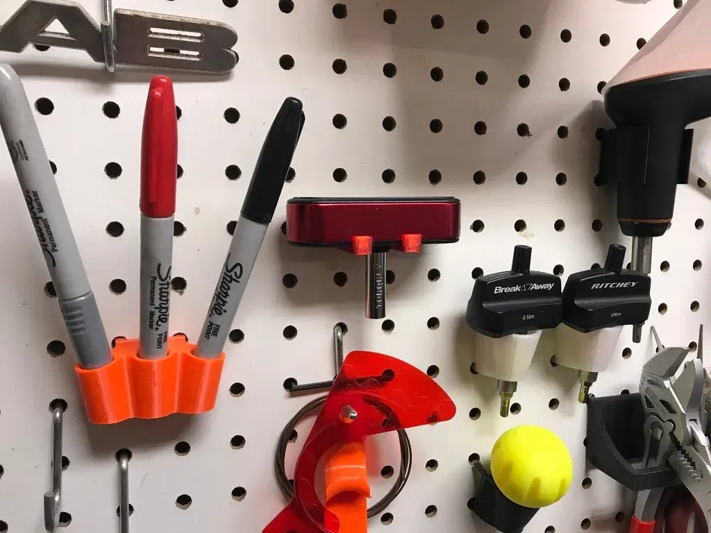 Giá treo pegboard đơn giản dành cho cờ lê lực cố định Torqkey của Bontrager (5Nm) và Prestacycle. Hướng dẫn tùy chỉnh Torqkey Bontrager bằng nam châm để giữ mũi lục giác và mẹo in ấn.