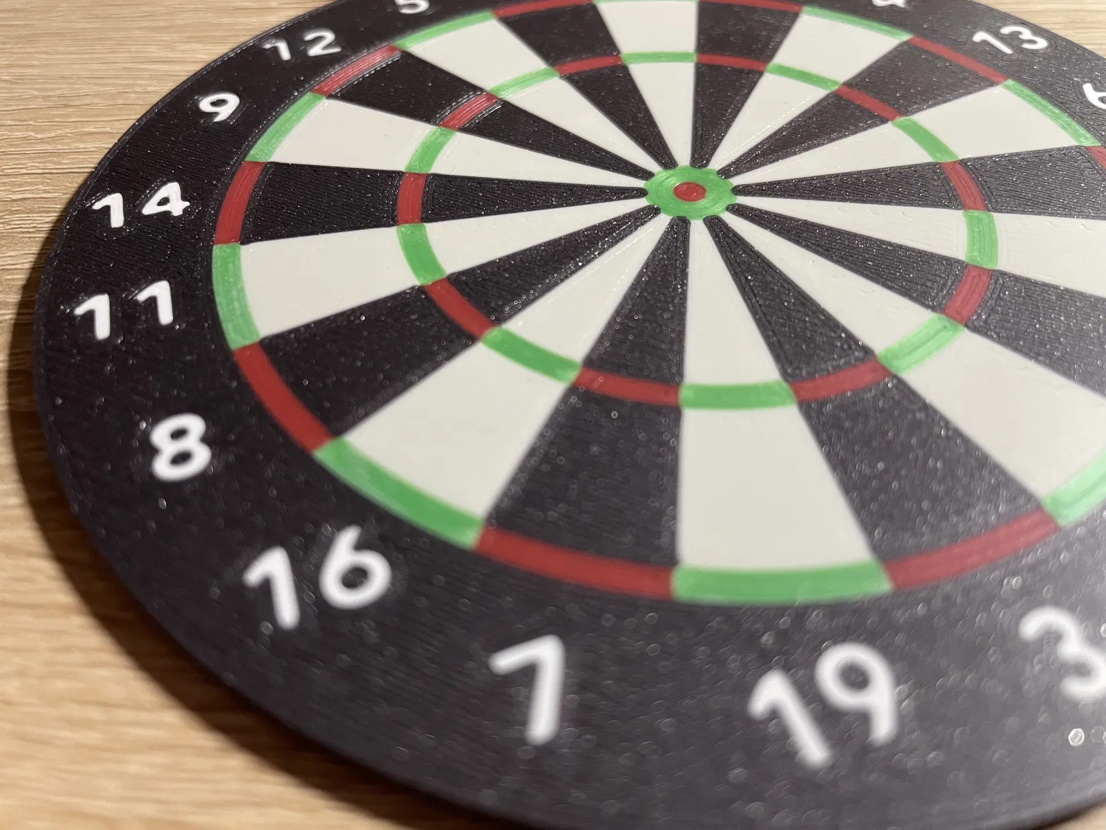 Podtácek lót ly hình bia ném phi tiêu (dartboard), kích thước khoảng 120 x 2,4mm. Phù hợp in multi-color; có kèm file 3MF cho MK4 để thay filament thủ công.