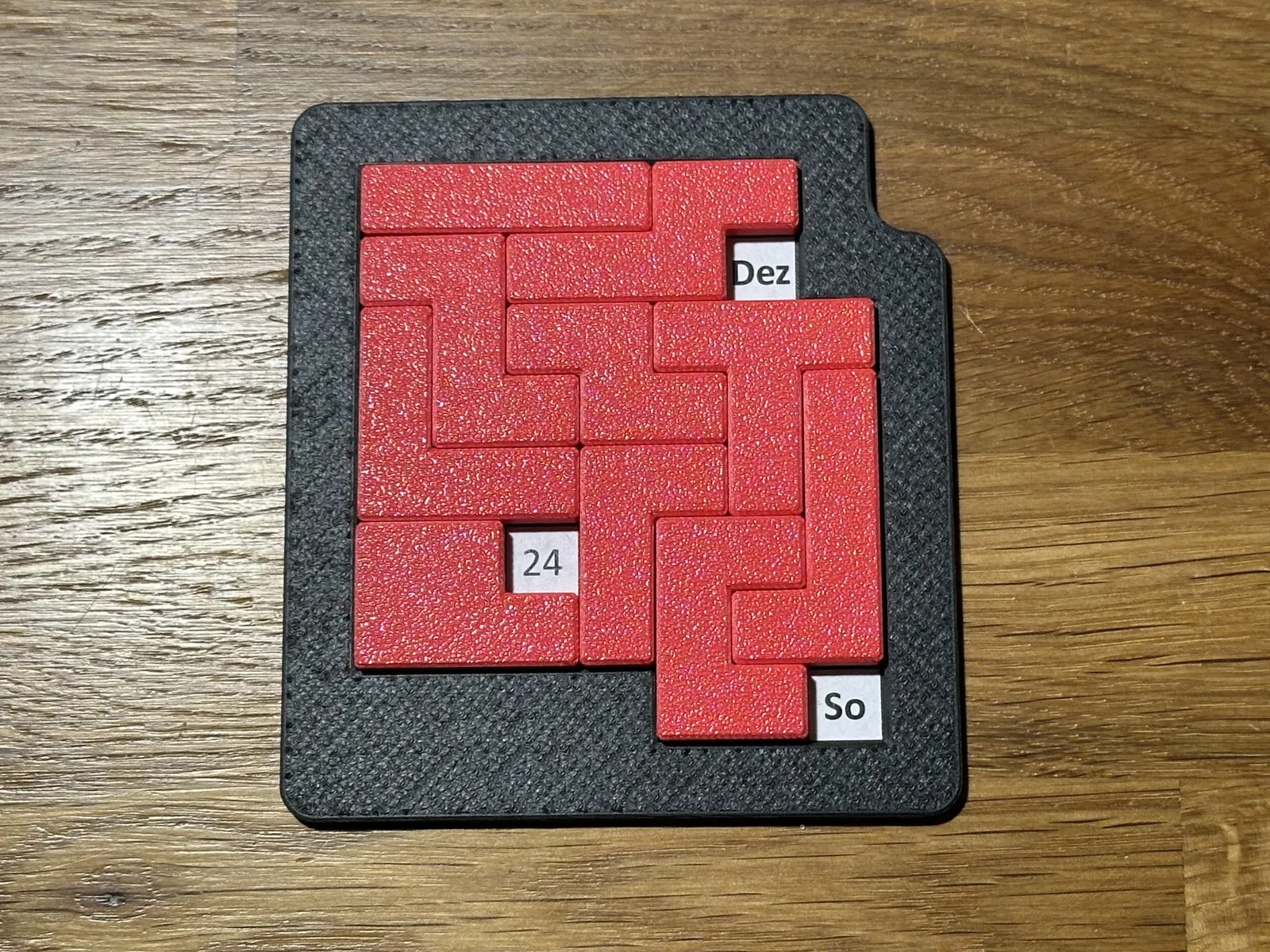 Phiên bản chỉnh sửa của "Pentomino Calender" từ abekabakoff. Các quân cờ và khung lịch được thay đổi chiều cao, cho phép in các ngày theo dạng 2D. Một cách sáng tạo để đếm ngày bằng 3D printing.