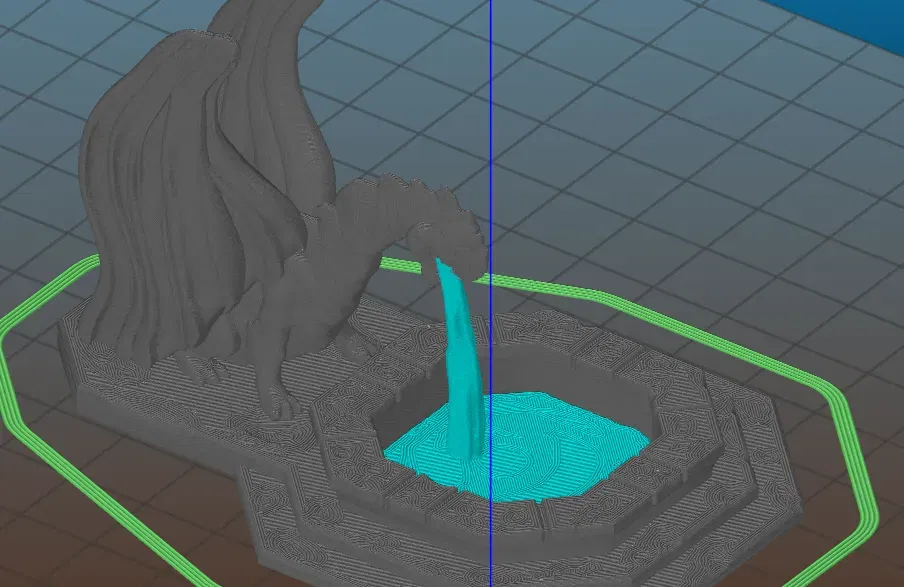 Tui đã tách phần "nước" trong Meshmixer để cho phép in hai màu với filament trong suốt. Bạn cũng có thể chỉ in phần "đá" và dùng resin cho phần nước theo hướng dẫn trong link.