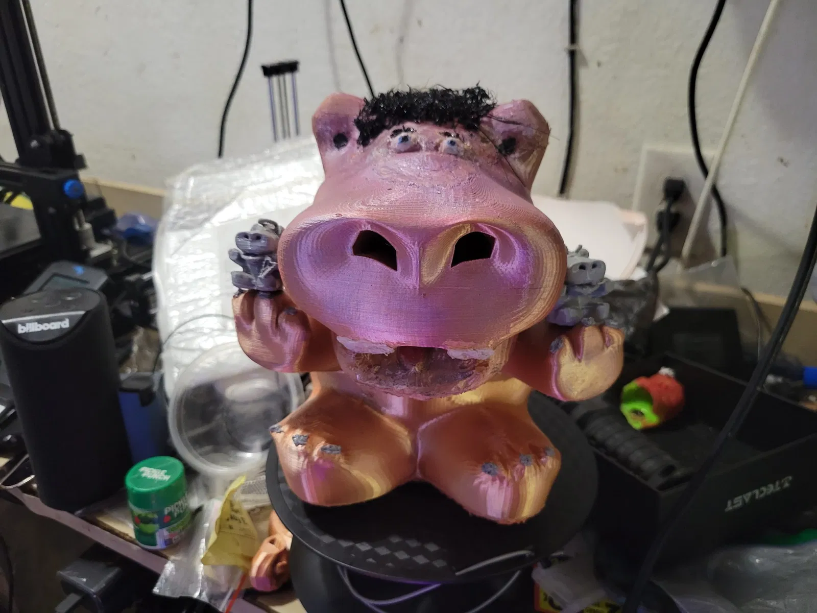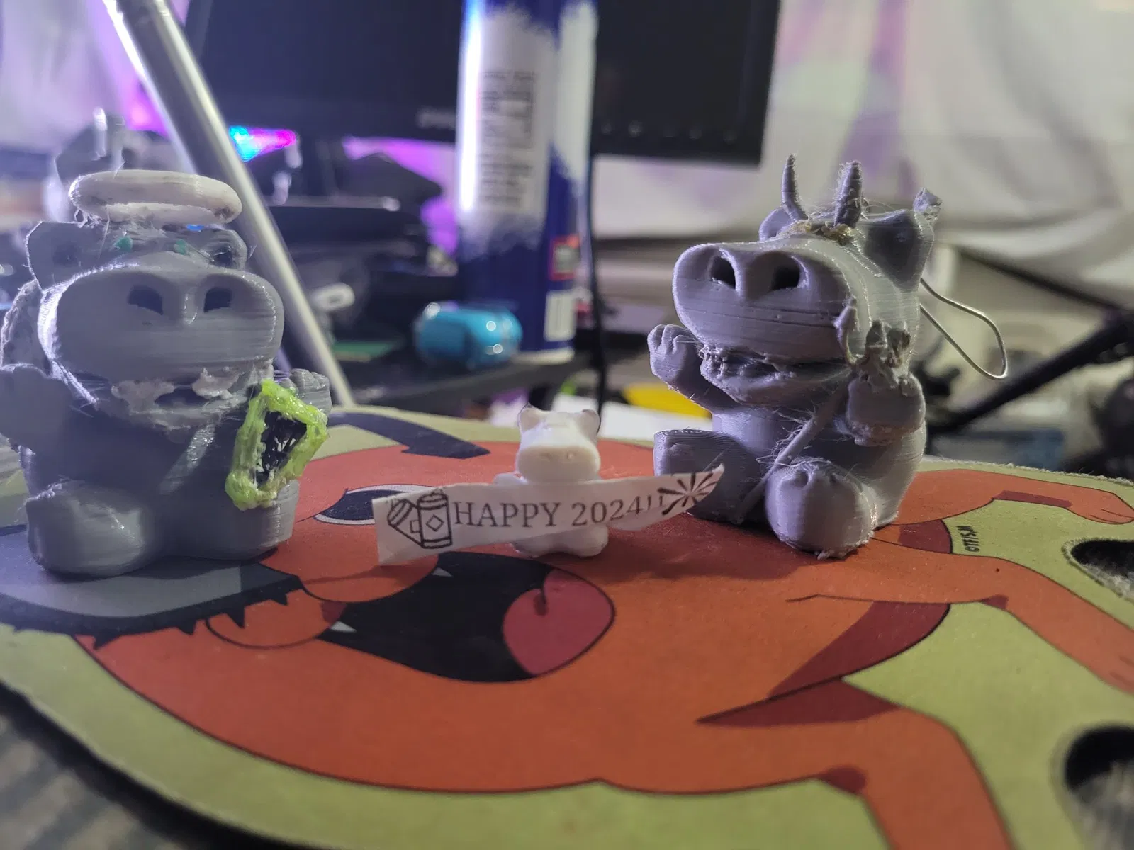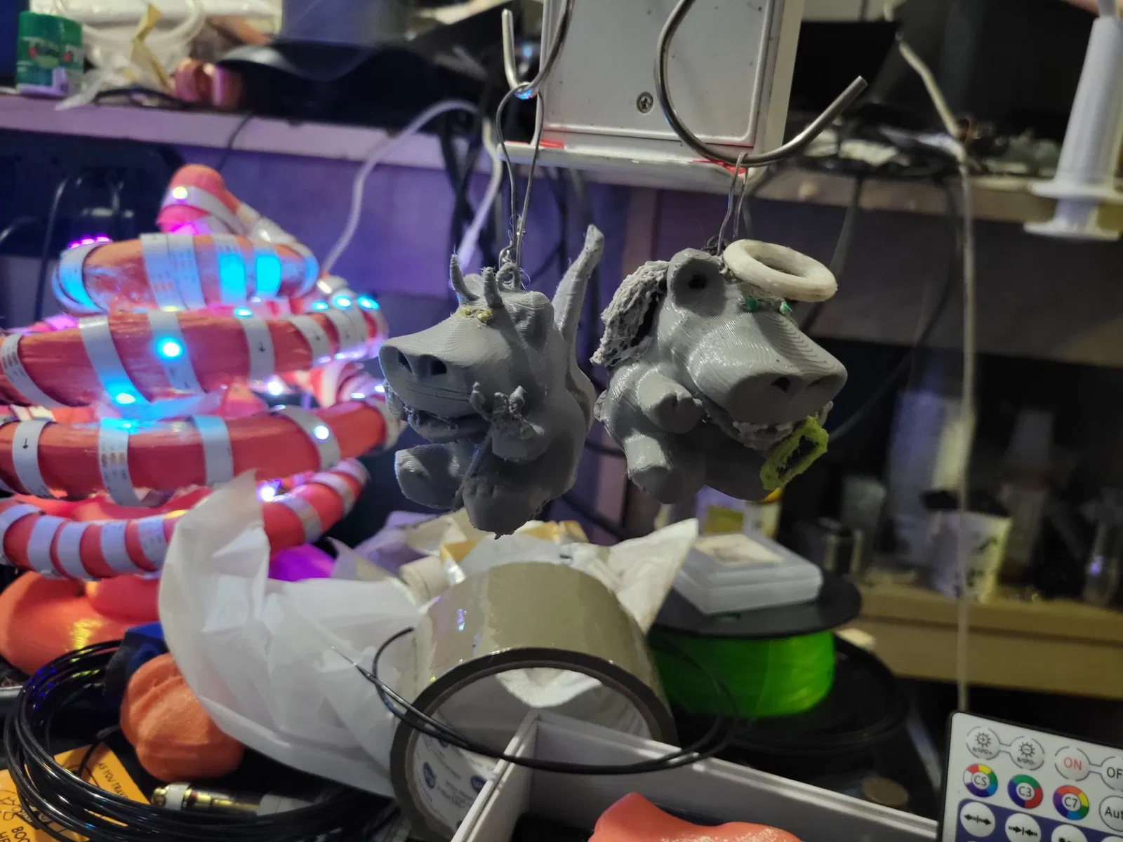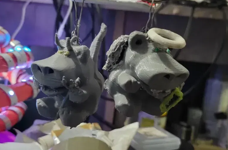 Tao không xài support gì hết, in ra cũng ổn hết, chỉ có phần chót chót của đôi cánh thiên thần là hơi bị lợn cợn thôi. Tui nghĩ chắc bạn nên custom support cho hai chỗ đó là được. Mấy cái mẫu này in ra cao khoảng 2 inch, mà tui nghi là hơi mỏng manh ở kích cỡ này đó, tùy thuộc vào chất lượng vật liệu với máy in của bạn nữa nha… Nếu mà bạn nghi ngờ chất lượng vật liệu hay độ chính xác của máy in thì nên scale nó bự lên chút. Tui có in 2 con bằng PLA với infill 20%, còn con Quỷ bằng TPU thì infill 15%. Mấy con PLA in ra cũng hơi nặng nha (ý là so với kích cỡ của nó đó… Cái này cái kia tầm 26 & 33g), chắc 15% là ổn rồi, hay thậm chí 10% cũng được. Tui có làm cái khoen nhỏ tiêu chuẩn ở trên, bạn cứ thêm dây, móc, kẹp giấy hay gì tùy ý, bạn tự tính được ha :).