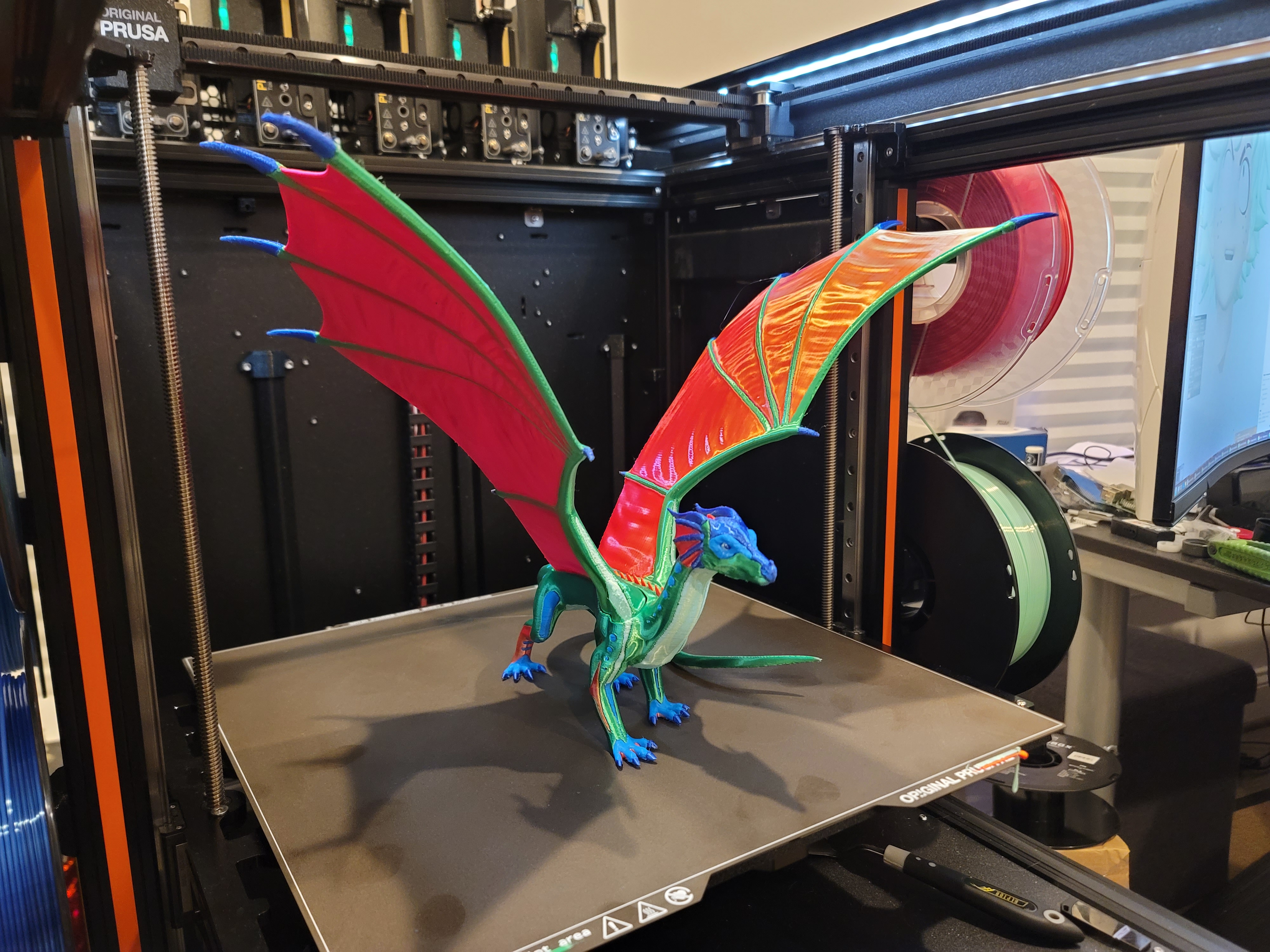 Tui muốn in mô hình này làm quà tặng cho một fan của bộ truyện "Wings of Fire" và cũng để tận dụng tính năng 5 màu của máy Prusa XL 5-tool của tui.