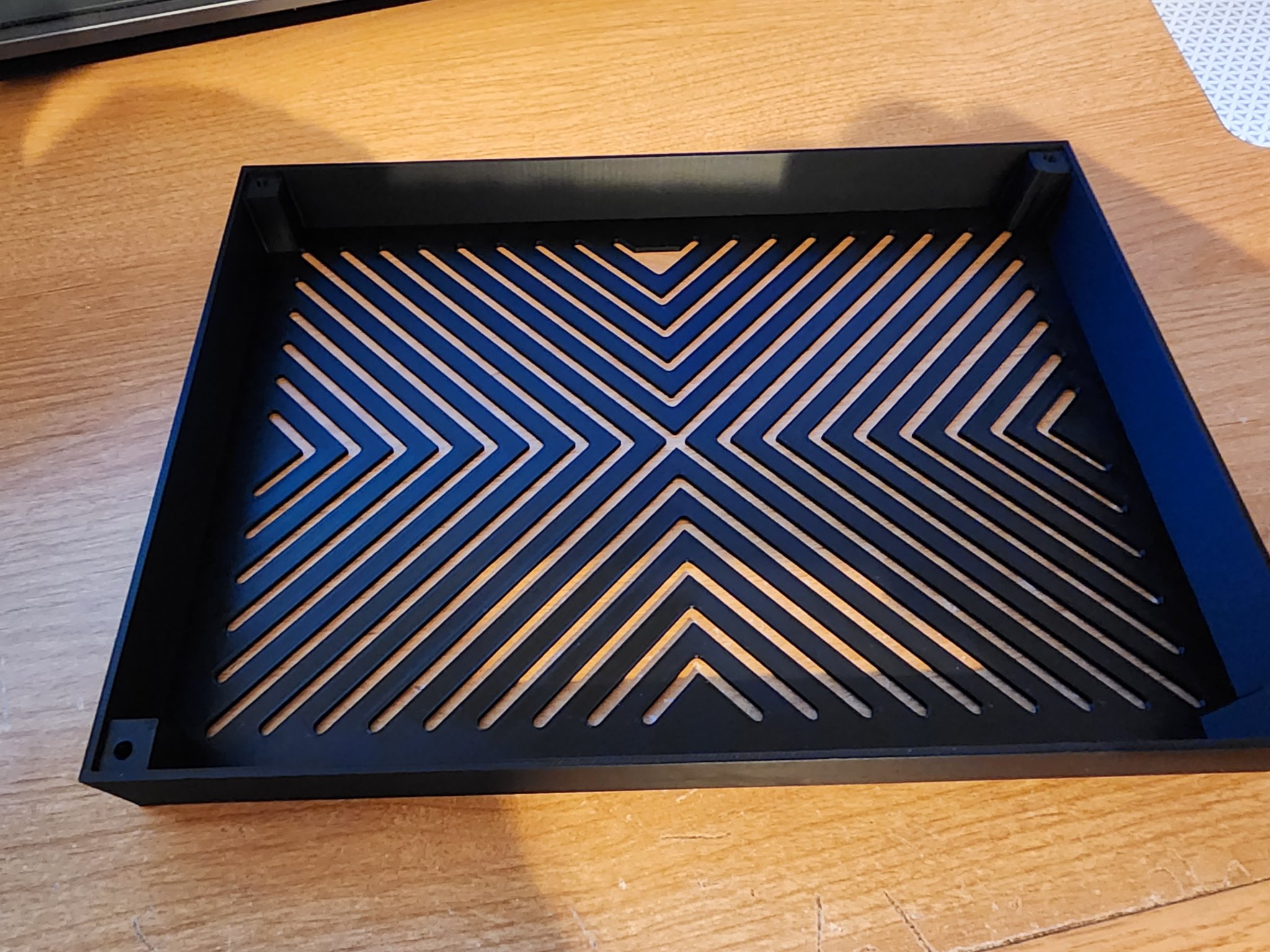 Front bezel has holes for brass M3 inserts. 240 x 171mm, it just fits on the X1C sitting square, you may be able to use a smaller bed if rotated. The inserts have to be very straight for the screws to line up.
