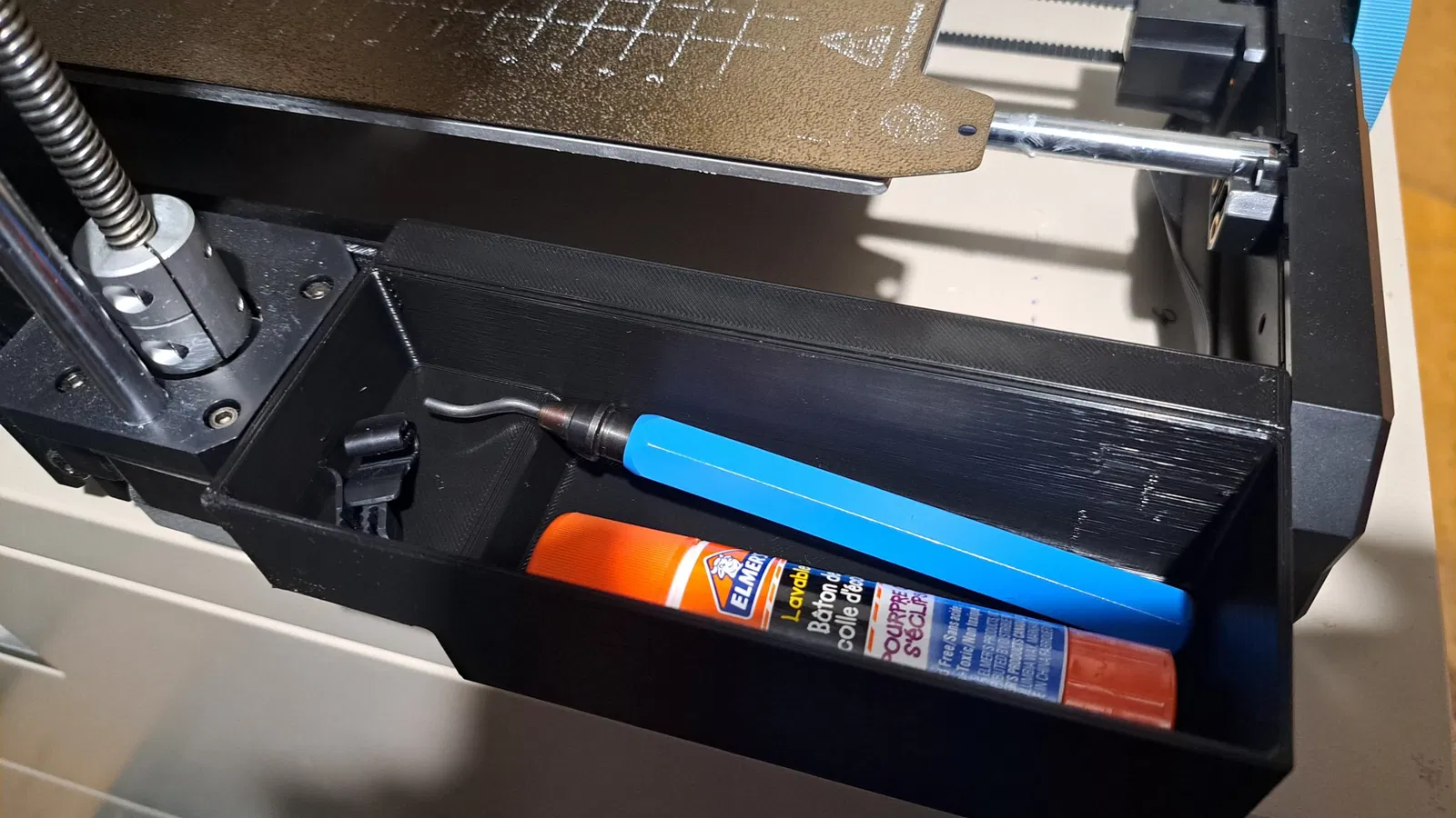 Cái thùng với kích thước vừa phải, gắn được bên hông trái của máy in SV06. Nó rất tiện để chứa đồ lặt vặt khi bạn đang in 3D, giúp bàn máy in của bạn gọn gàng hơn.