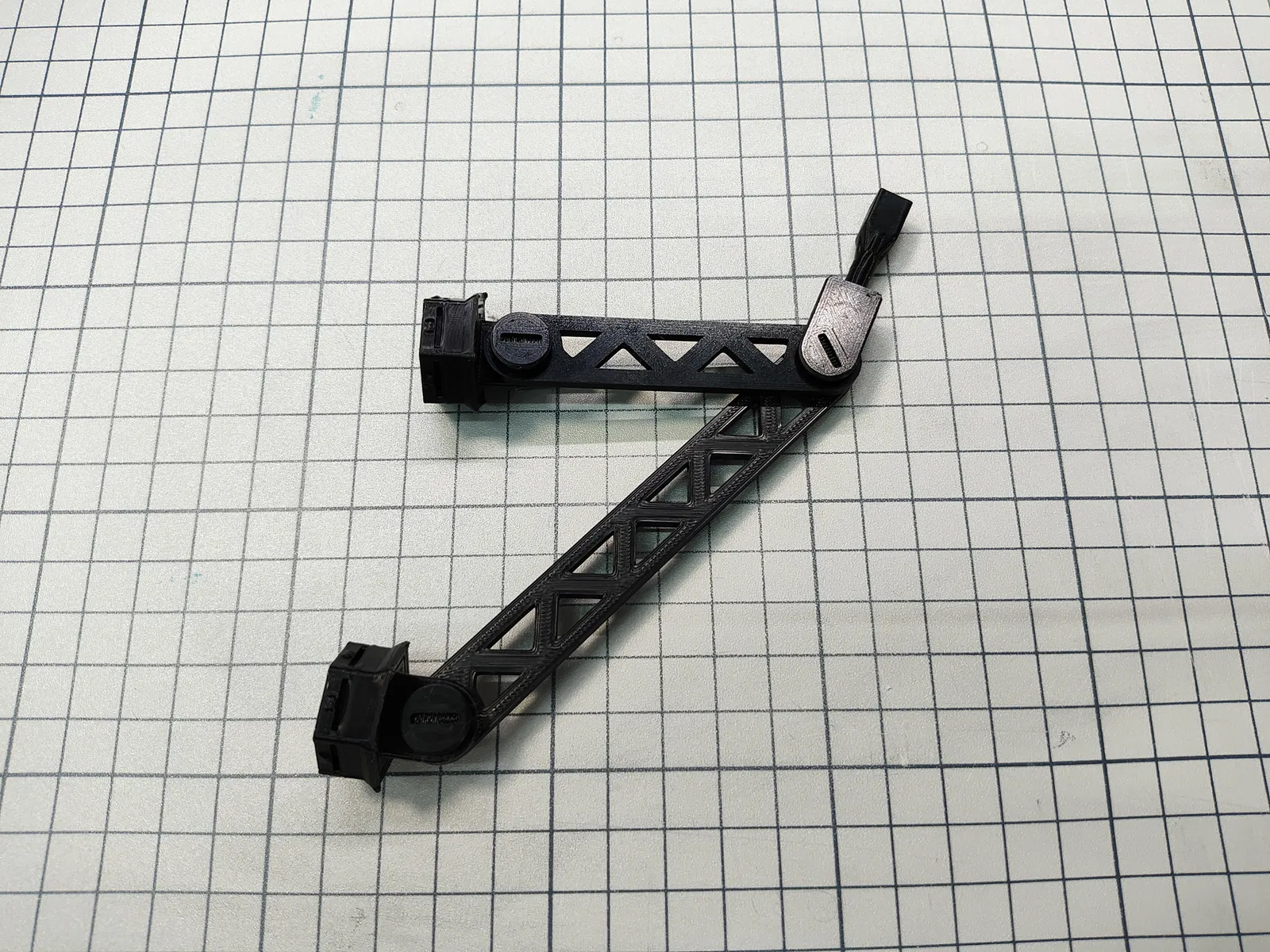 Hai bộ phận cánh tay, với bất kỳ độ dài nào cần thiết tùy thuộc vào kích thước của bộ kit đã lắp ráp của bạn. Thông thường, bạn sẽ muốn hai độ dài cánh tay khác nhau, để bạn có thể tạo thành một hình tam giác với cạnh dài hơn được sử dụng làm thanh giằng xuống (như thể hiện trong ảnh).