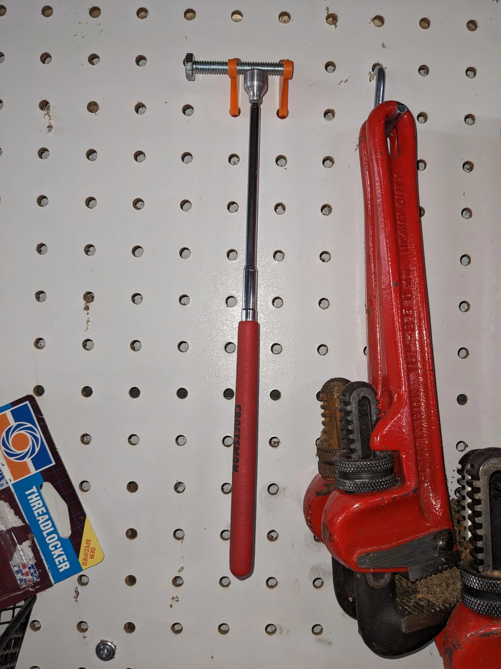Lưu ý: Thực ra không cần thiết phải cắt bu lông theo chiều dài - điều này chủ yếu là để làm cho nó trông gọn gàng hơn một chút. Bạn cũng có thể sử dụng một que dài hơn (xem ảnh) để giữ nhiều dụng cụ nam châm ở hai bên.