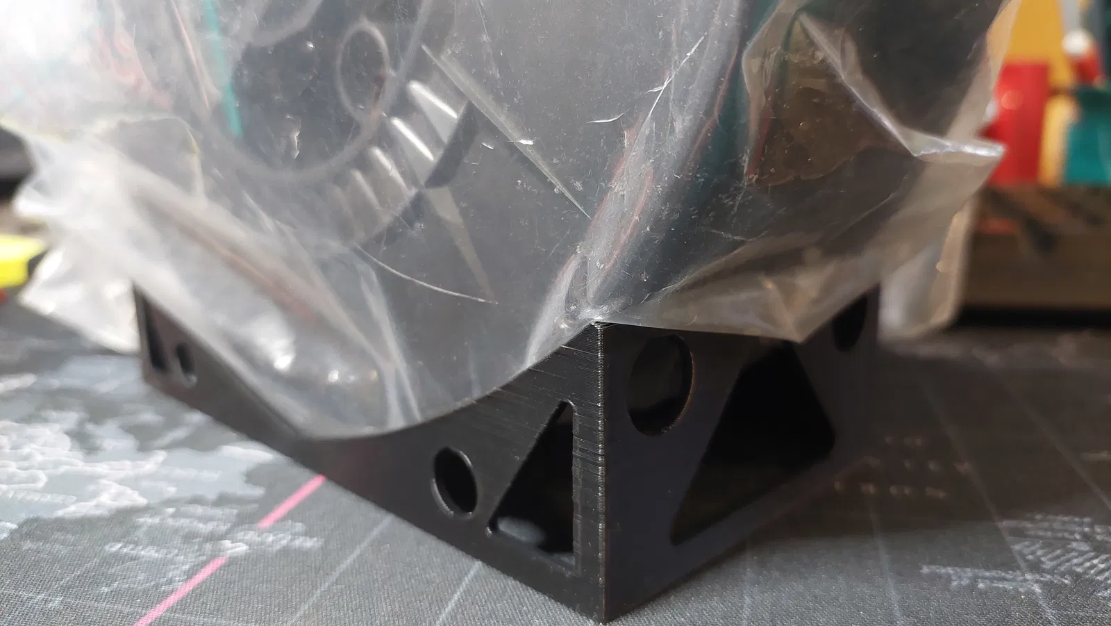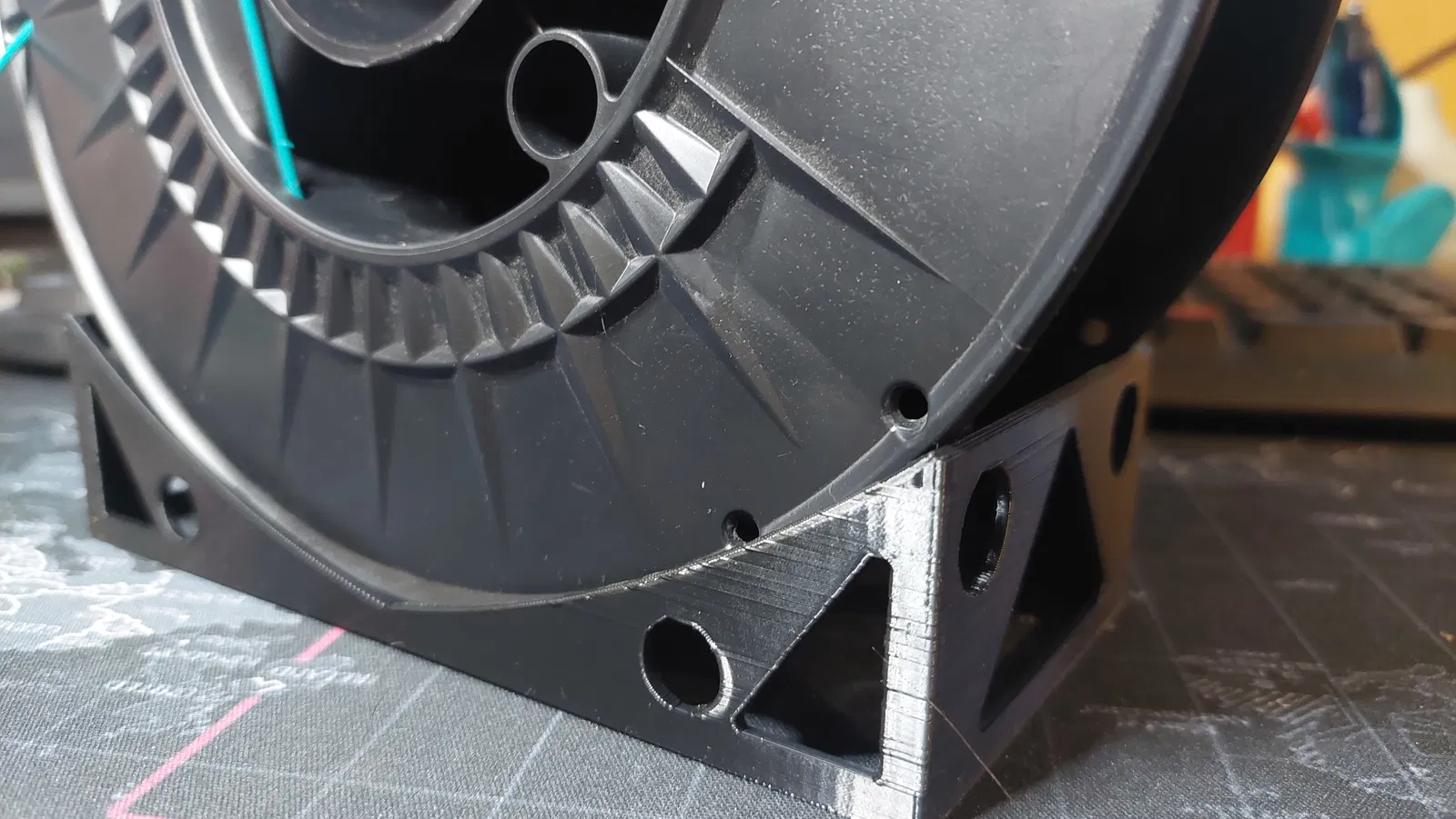 Giá đỡ cuộn chỉ để bàn cho sợi nhựa của bạn. Giá đỡ cuộn chỉ đơn giản này chỉ sử dụng 21g sợi nhựa và không yêu cầu support. Bạn có thể tùy chỉnh chiều rộng của giá đỡ bằng cách sửa đổi tham số **width** trong tệp f3d.