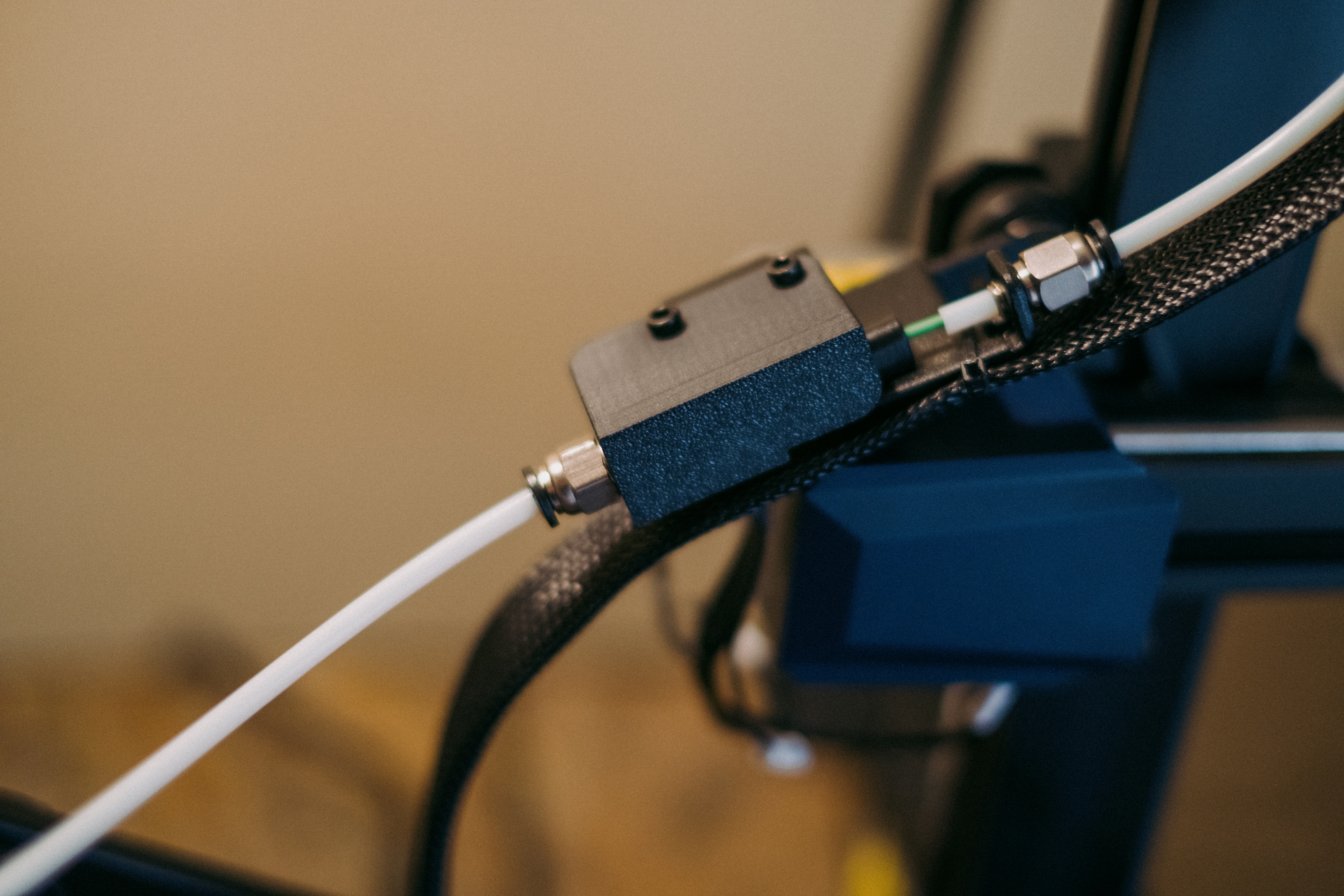Tôi ghét vị trí của giá đỡ cuộn dây trên Kobra 2 Max. Một vài lần sợi nhựa bị đứt do cách bố trí mọi thứ. Tôi quyết định tạo cái này, một bộ chuyển đổi để tôi có thể kết nối ống Bowden với cảm biến phát hiện hết sợi nhựa. Bằng cách này, tôi có thể cấp sợi nhựa từ hộp chống ẩm và loại bỏ giá đỡ cuộn dây gốc xấu xí đó.