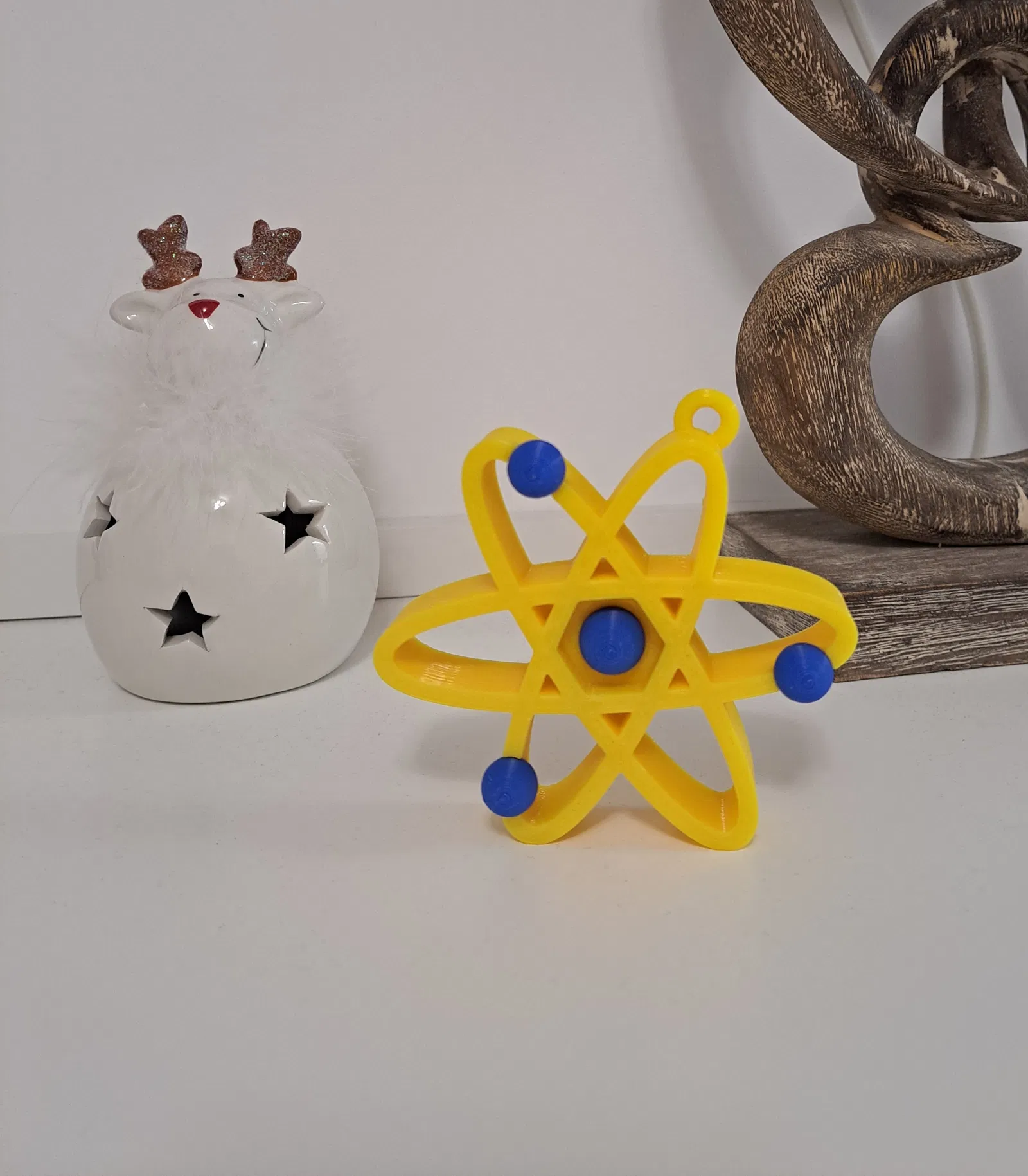 Dành cho người hâm mộ BBT - Logo Nguyên Tử Big Bang Theory - Trang Trí Treo. Thiết kế gồm 3 phần: thân có móc treo, quả cầu lớn và 3 quả cầu nhỏ. In bằng PETG hoặc PLA.