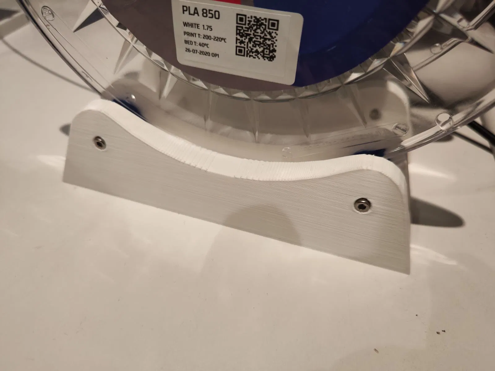 Giá đỡ cho cuộn dây filament 1kg. Có thể điều chỉnh bằng ma sát cho các độ dày khác nhau. Để lắp đặt, bạn chỉ cần 4 ốc M3 dài 30mm, 4 đai ốc M3 và 4 vòng bi B623ZZ. Các vòng bi được đặt giữa hai nửa ròng rọc. In 8 nửa ròng rọc. Giá đỡ này là bản mod đầu tiên cho Chocaprinter_3D V1 của chúng tôi. In ở độ cao lớp 0,3mm, 3 đường viền và 15% độ lấp đầy bằng PLA.