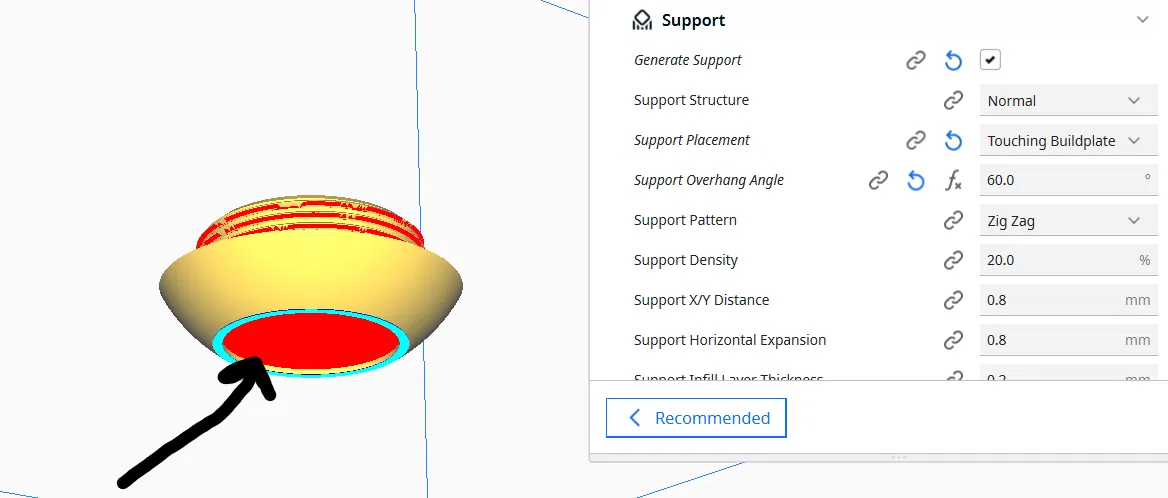 Chỉ cần sử dụng giá đỡ cho phần GIỮA trên vòng tròn bên trong (bạn có thể tìm thấy hình ảnh cài đặt giá đỡ và hướng in).