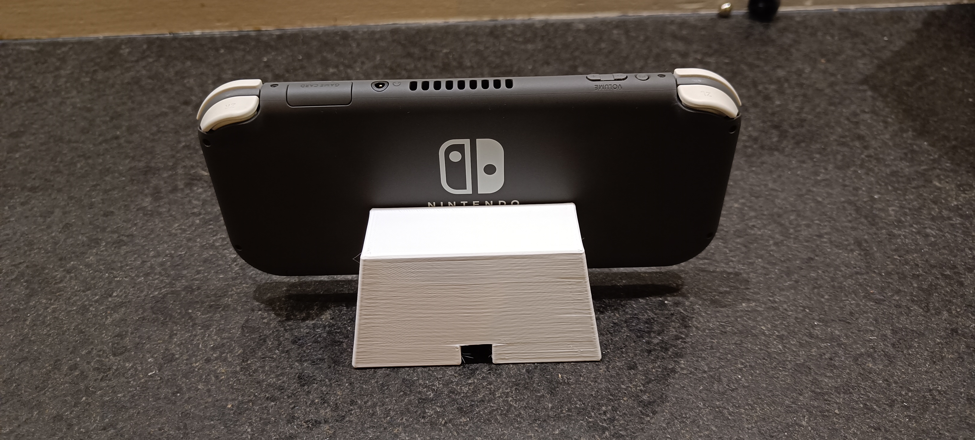 Đế này dùng để đặt ngang Nintendo Switch Lite. Nó có một khe ở dưới cùng để gắn phích cắm sạc gốc, nhưng không có chỗ trống bên dưới. Bạn có thể đặt nó trên một lớp vỏ có lỗ bên dưới hoặc thứ gì đó.