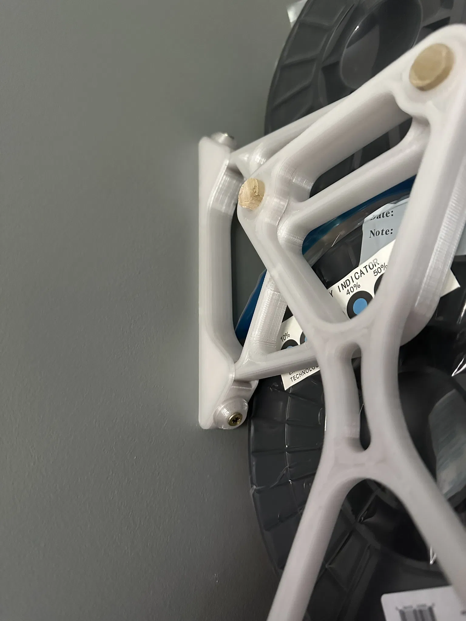 Điểm thay đổi thực sự ở đây là thiết lập treo tường. Tôi đã đặt các giá đỡ một cách chiến lược lên trên các thanh khung tường để có sức giữ chắc chắn. Không còn lo lắng về việc cuộn filament bị rơi giữa chừng khi đang in – tôi đã từng gặp phải rồi.
