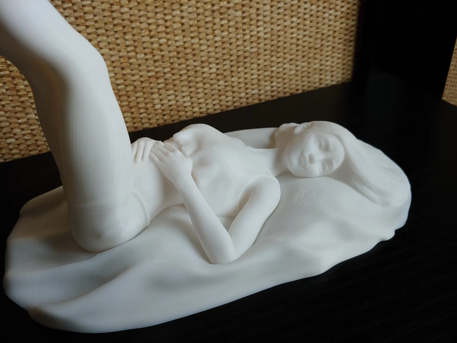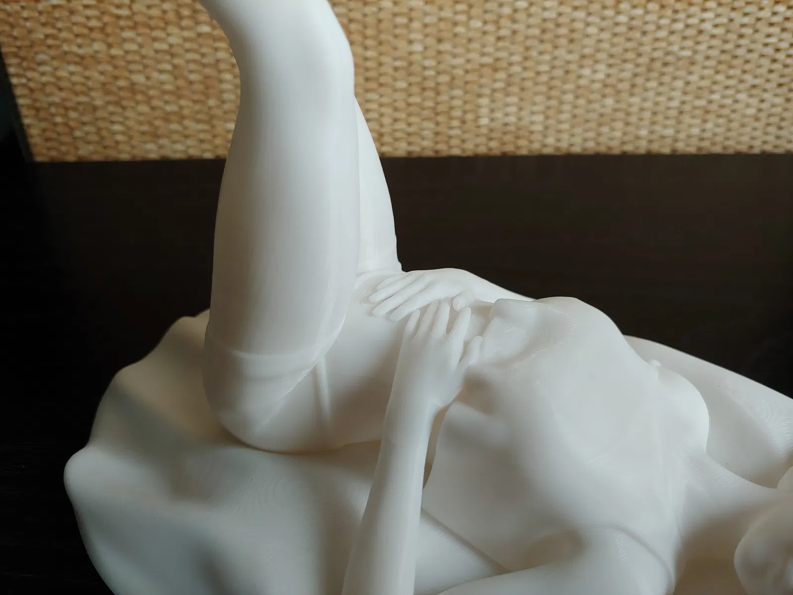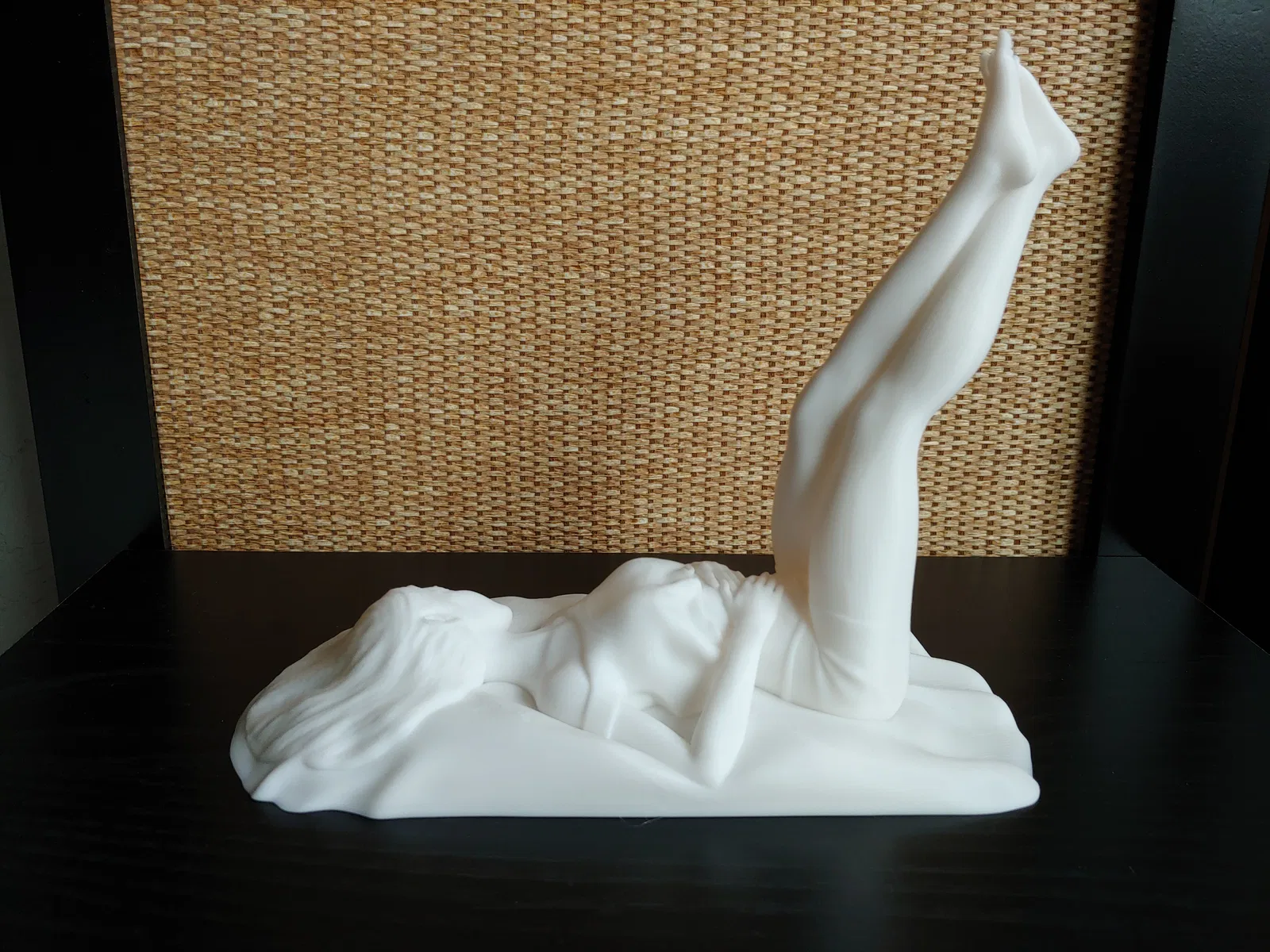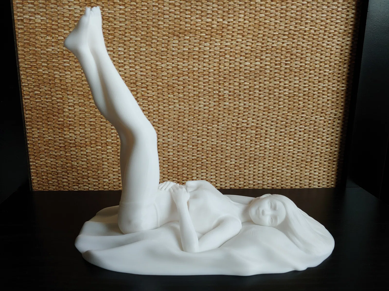 Tượng chặn sách hình cô gái, kích thước phù hợp cho phim/game Blu-ray, nhưng cũng có thể dùng cho các vật cao hơn. Mô hình này là chặn sách bên phải, có thể lật để làm chặn sách bên trái. Tấm chăn ở chân cô ấy giúp giữ vật không bị trượt. In ở 0.12mm để có bề mặt mịn, hoặc có thể in ở lớp lớn hơn. Sử dụng 5% độ đặc ruột (line style). In bằng Ender 3 V2 với Jayo white PLA.