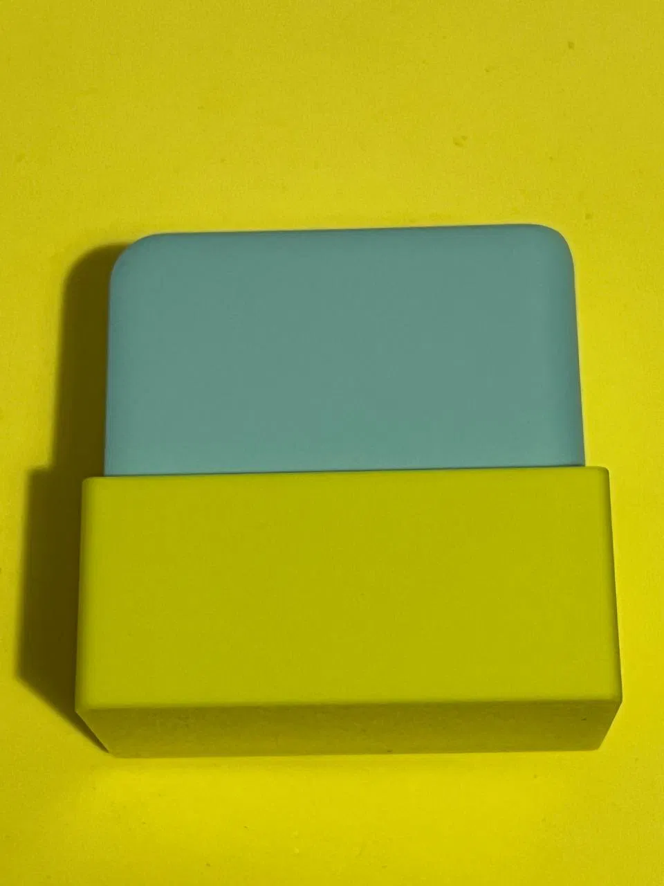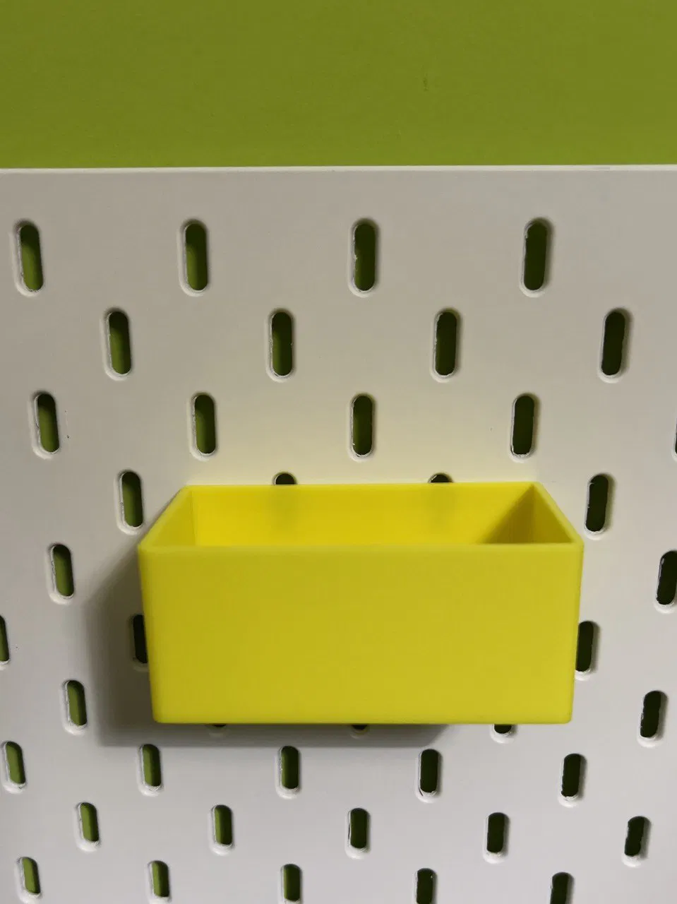 Hộp đựng cho bảng Skadis, tương thích với máy in nhiệt Phomemo M02Pro. Sản phẩm được in với vòi phun 0,4mm, chiều cao lớp 0,2mm, sử dụng nhựa tái chế Smart material màu vàng và mất 45 phút 21 giây để hoàn thành.