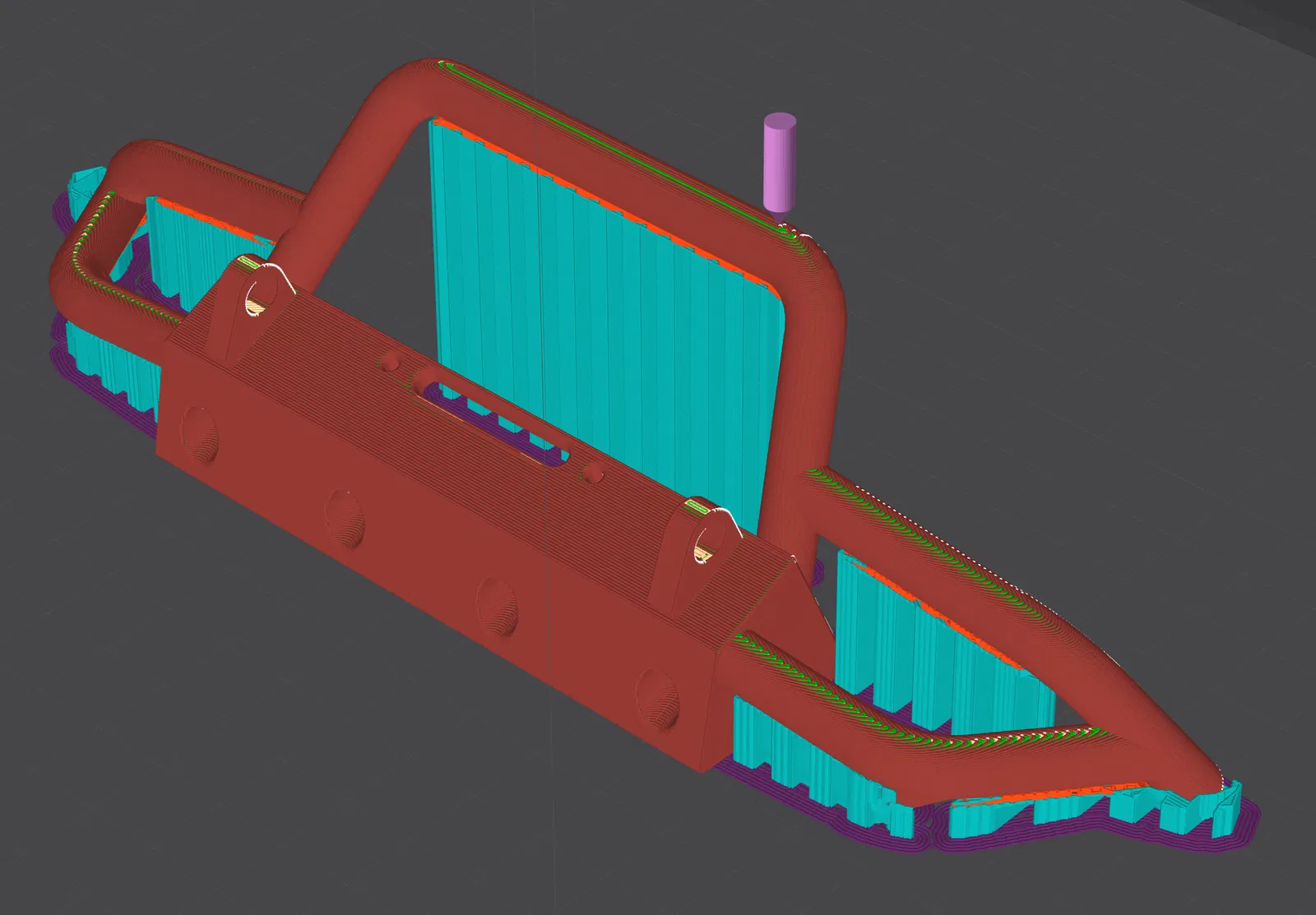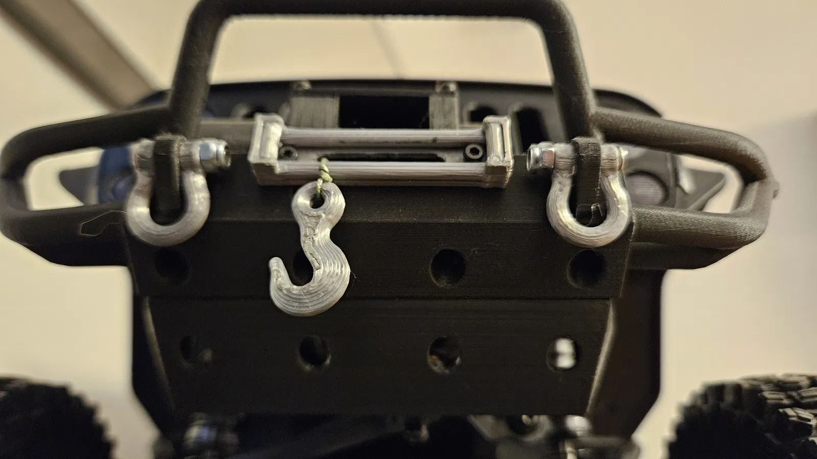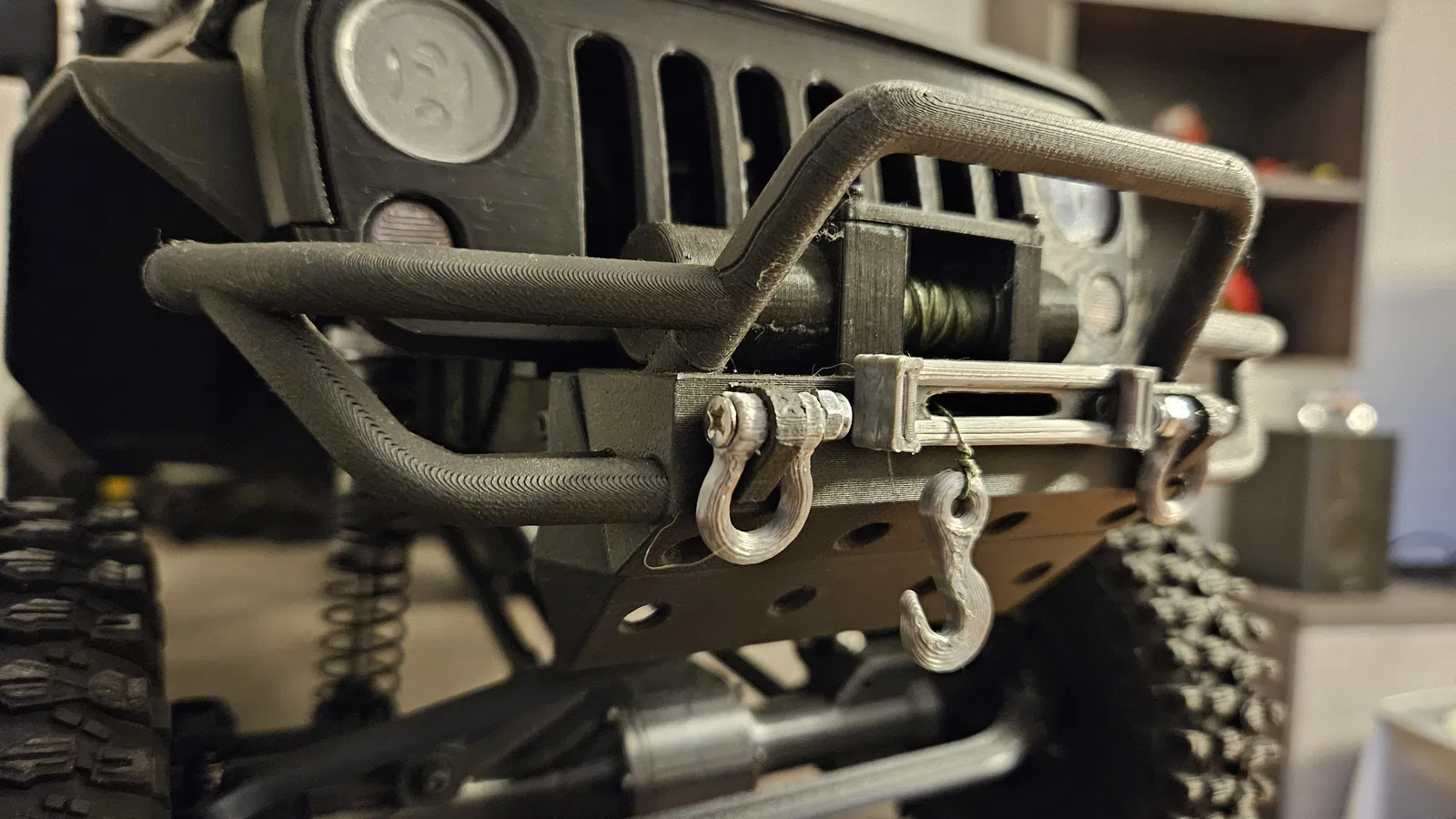 Tôi cũng đã tùy chỉnh tời, dây cáp tời, tang trống tời chắc chắn hơn và các vòng D-ring. In bằng Overture Matte PLA với 80% độ đặc và lớp in 0.10mm. Trong các hình ảnh, bạn có thể tìm thấy cách định hướng tốt nhất để in.