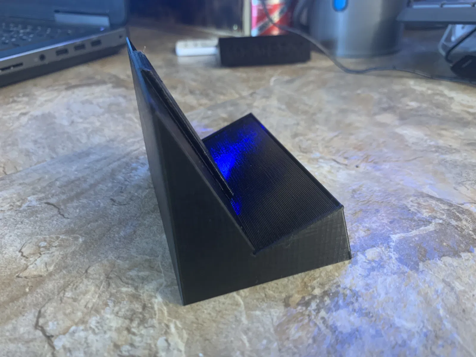 Sau khi hoàn thành bộ đàm (tr)uSDX của DL2MAN và PE1NNZ cùng với hộp pin đi kèm (liên kết bên dưới) cho ba viên pin 18650. Tôi thấy mình đang tìm kiếm thứ gì đó để đỡ máy. Vì vậy, tôi đã thiết kế và in hai chiếc giá đỡ này và tôi hài lòng với kết quả. Hình dạng là một cái nêm cơ bản với một gờ ở phía sau và các cạnh nhỏ nhô lên ở hai bên và phía trước để giữ chặt bộ thu phát kèm theo hộp pin. Cập nhật: Tôi đã thêm một phiên bản giá đỡ vẫn sử dụng đế pin do DL2MAN thiết kế (liên kết bên dưới) trên bộ thu phát và giá đỡ bàn sẽ sử dụng ngàm đuôi én mà ông ấy cung cấp. Điều này tạo ra một sự gắn kết chắc chắn của bộ thu phát vào giá đỡ. Liên kết đến đế pin Liên kết đến hộp pin Liên kết đến toàn bộ vỏ máy Tôi không sở hữu máy in SLA, nhưng tôi đã lấy một chai nhựa in 3D SLA màu trắng và một ống tiêm. Tôi đổ đầy nhựa màu trắng vào các chữ khắc và chiếu đèn pin UV vào một lúc, sau đó lau sạch bằng cồn Isopropyl để làm nổi bật các chữ cái. Chỉ là một mẹo nhỏ về nhựa resin từ tôi dành cho bạn. Tôi đã thêm chân cao su vào giá đỡ của mình. Giá đỡ tạo đủ khoảng trống trên mặt bàn để sử dụng với "(tr)uSDX knob spinner" mà tôi cũng đã thiết kế. Chúc bạn vui vẻ và 73 từ W5AUG