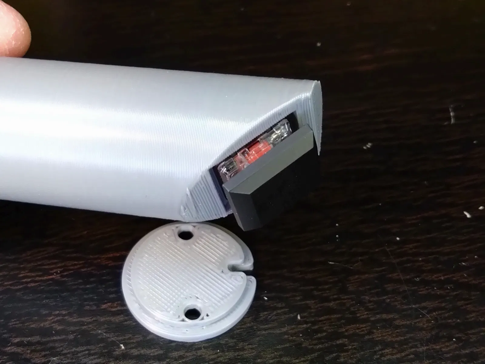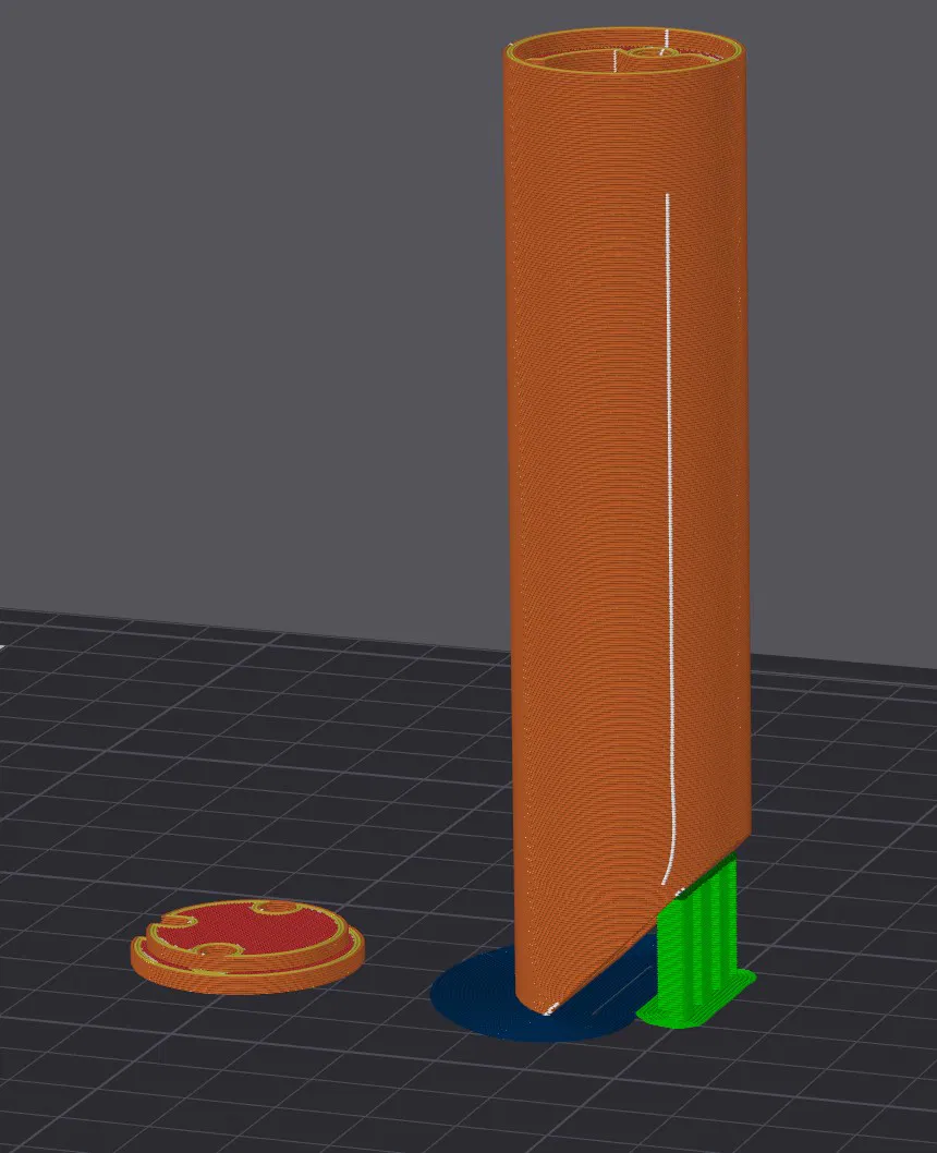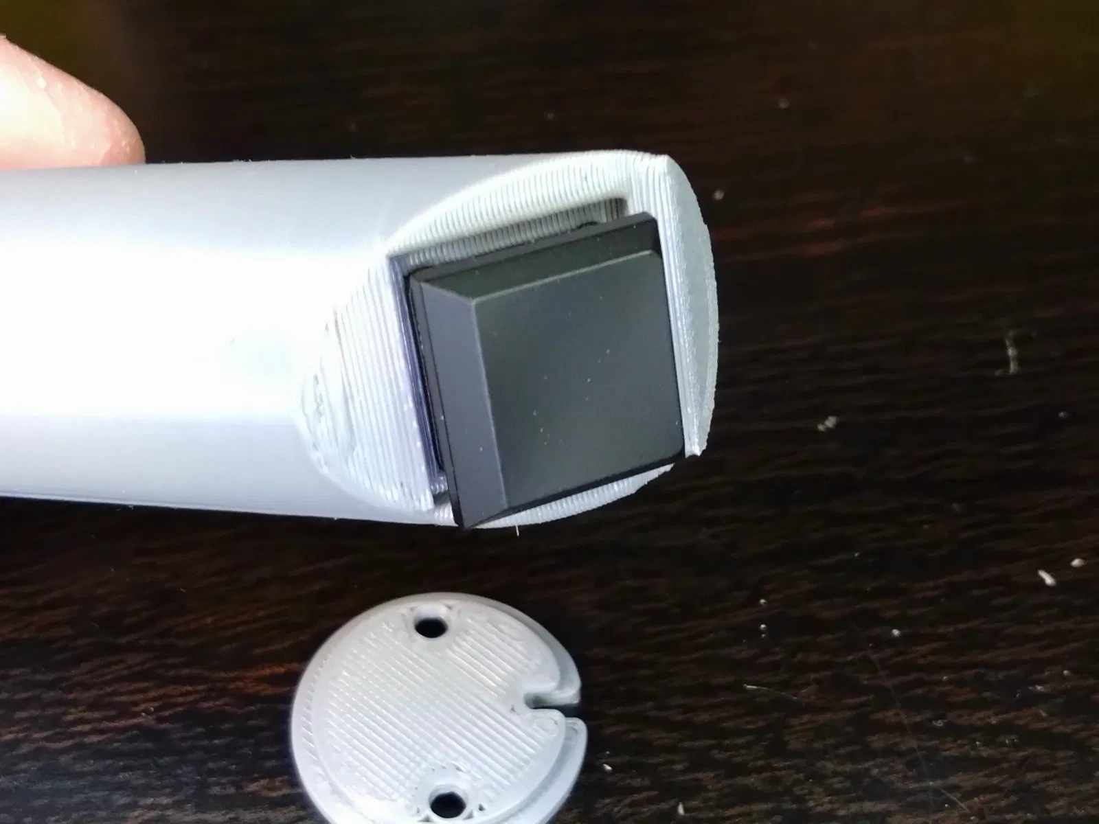 Đã đề xuất hướng in được hiển thị trong hình ảnh, nhưng thành công phụ thuộc vào độ bám của bàn in. Sử dụng hai vít chìm M3 để gắn nắp dưới.