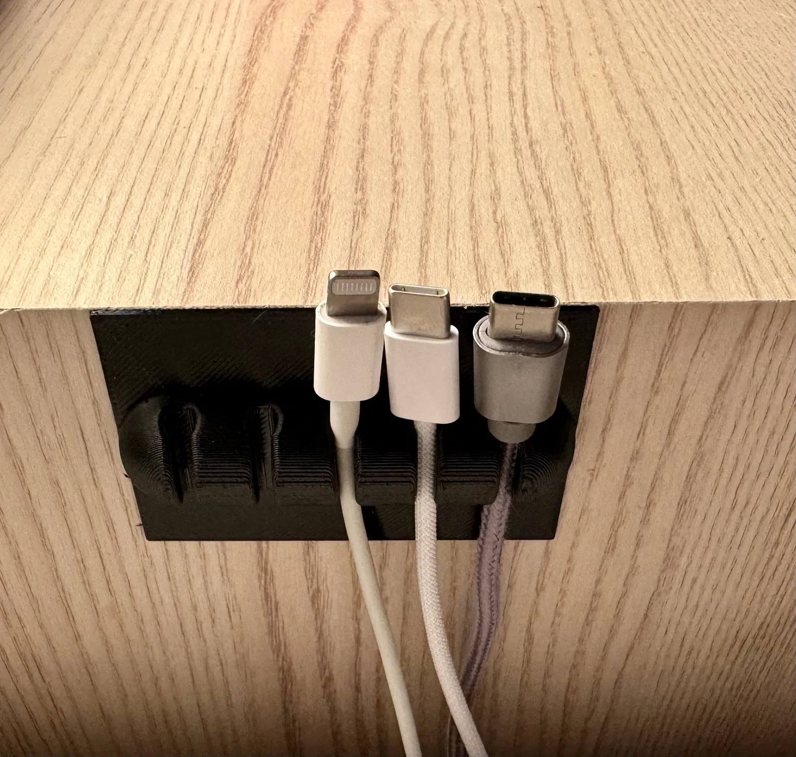 Dụng cụ giữ dây cáp với đế sau lớn hơn để gắn bằng băng dính tesa. Tốt để in bằng nhựa TPU. Có thể điều chỉnh để phù hợp với nhiều loại cáp sạc khác nhau nhờ chất liệu linh hoạt.