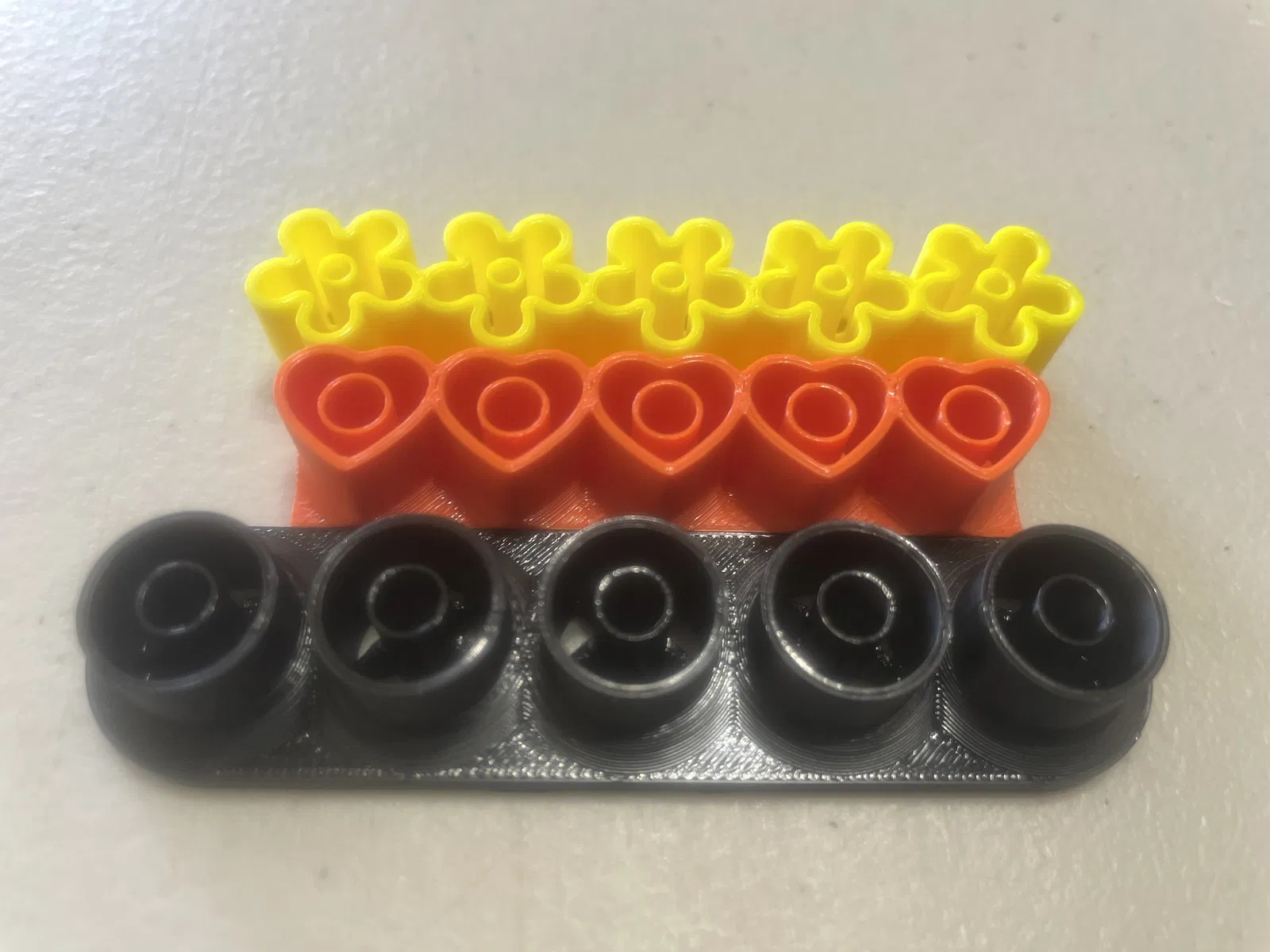 Tôi đã in với vòi phun 0.4mm ở độ cao lớp 0.20mm bằng PETG. Các vòng tròn bên trong chỉ dày một lớp in, vì vậy tôi không chắc chúng sẽ tồn tại được bao lâu khi bị đẩy qua đất sét, nhưng chúng có cảm giác khá chắc chắn, với độ bám dính lớp tốt.