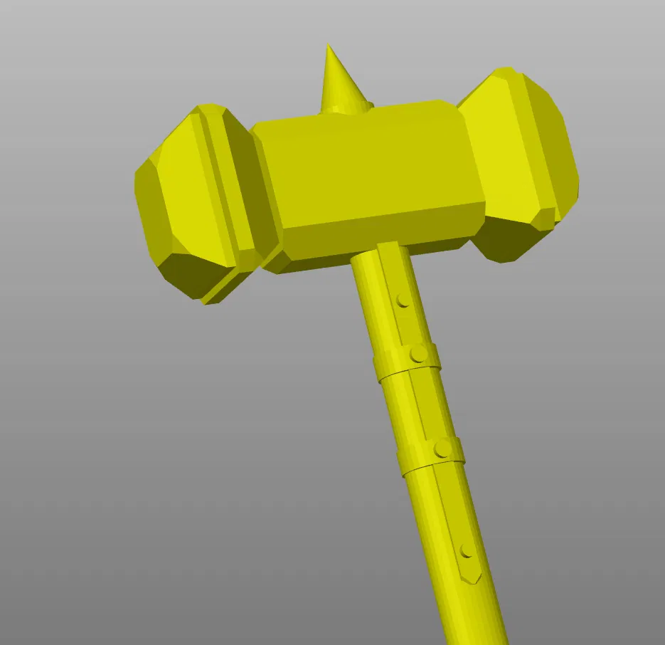Mô hình 3D đơn giản của một cây búa chiến. Đây là mô hình 3D thứ hai của tác giả, được tạo ra bằng Blender. Hướng dẫn về hỗ trợ in và lời kêu gọi chia sẻ các bản sửa đổi.