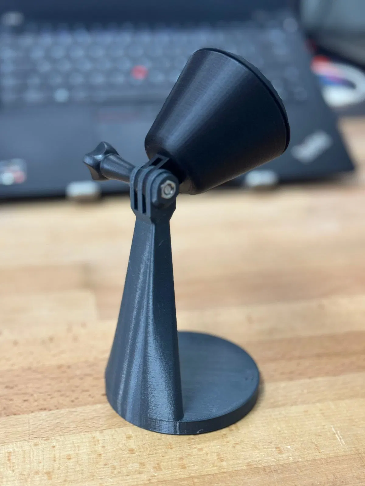 Bộ chuyển đổi Magsafe GoPro. Trông giống như một chiếc đèn từ Disney. Phần giá đỡ này có ngàm GoPro và bộ chuyển đổi QuadLock, và nam châm Magsafe này sẽ giúp bạn gắn nó vào điện thoại của mình.