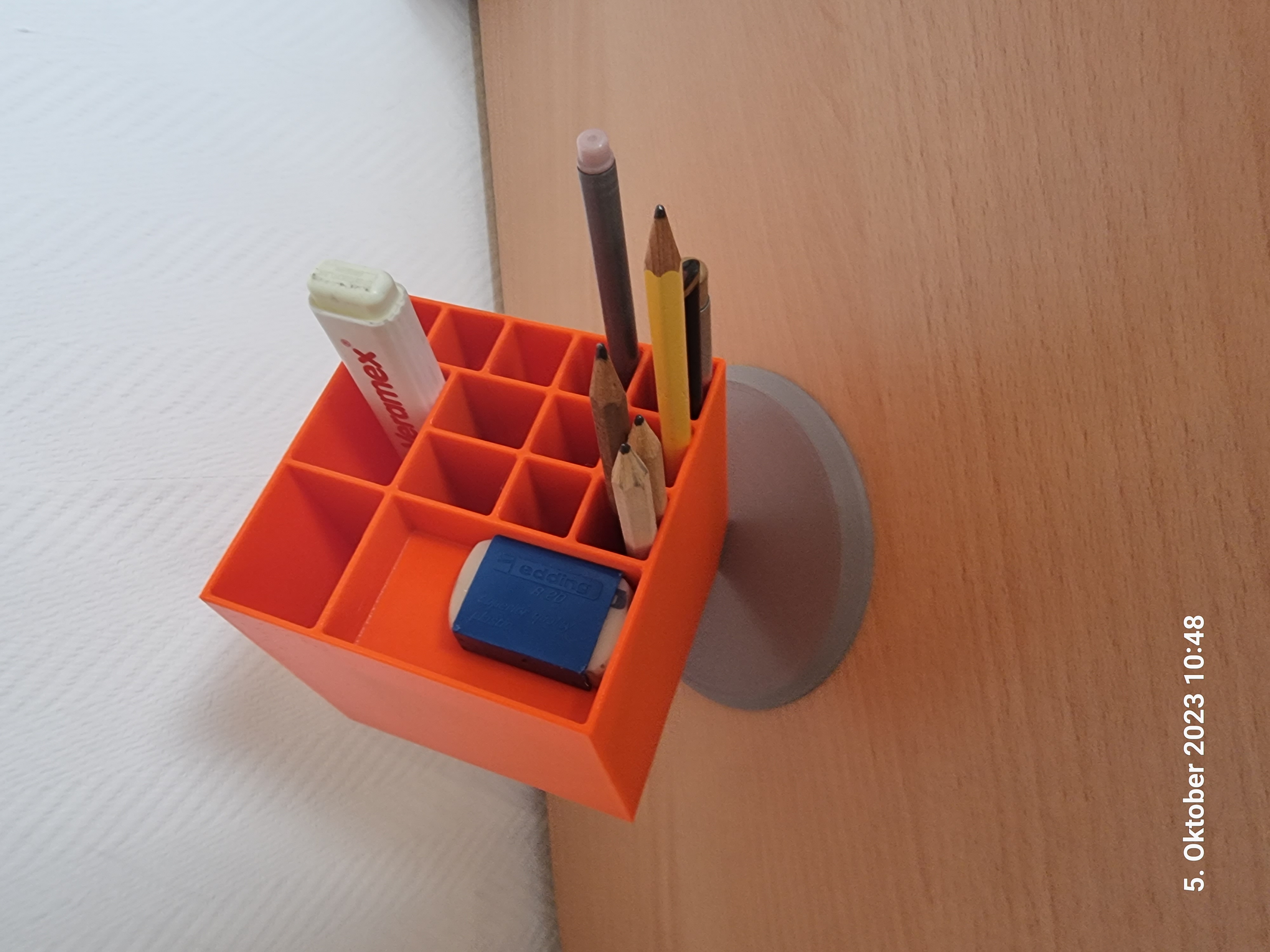 Mô hình "Büro-Buttler" là một người giúp việc văn phòng/hộp đựng đồ trên bàn làm việc khác. Bản in thử nghiệm trên Prusa MK4 với PETG, thời gian in khoảng 10 giờ, không cần support.