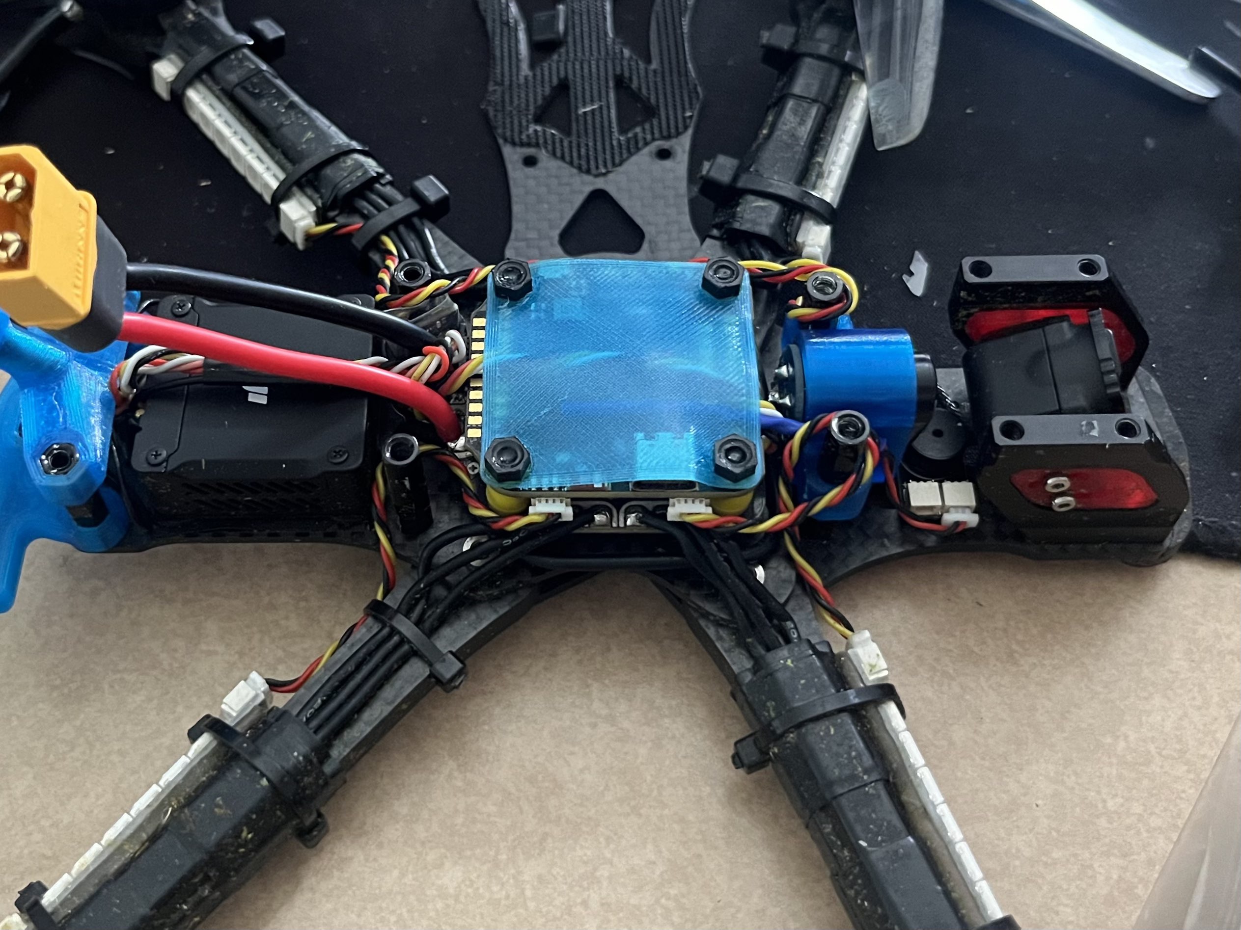 Một vỏ mỏng cho bộ điều khiển bay. Khung máy của tôi rất chật và bộ điều khiển bay (FC) cùng bộ điều khiển tốc độ điện tử (ESC) của tôi rất cao nên tôi đã tạo ra vỏ này để ngăn nó cọ xát vào dây đeo pin.