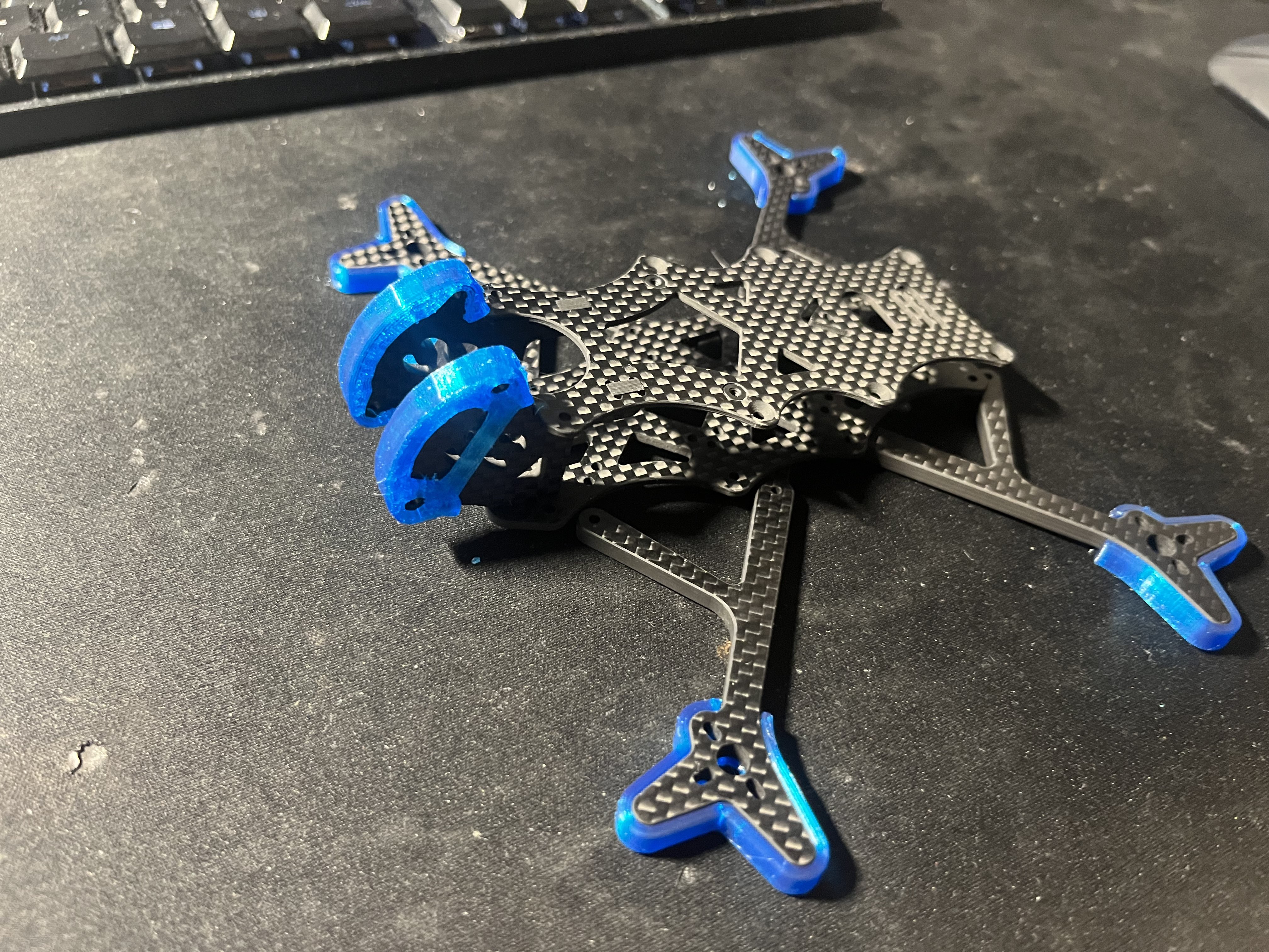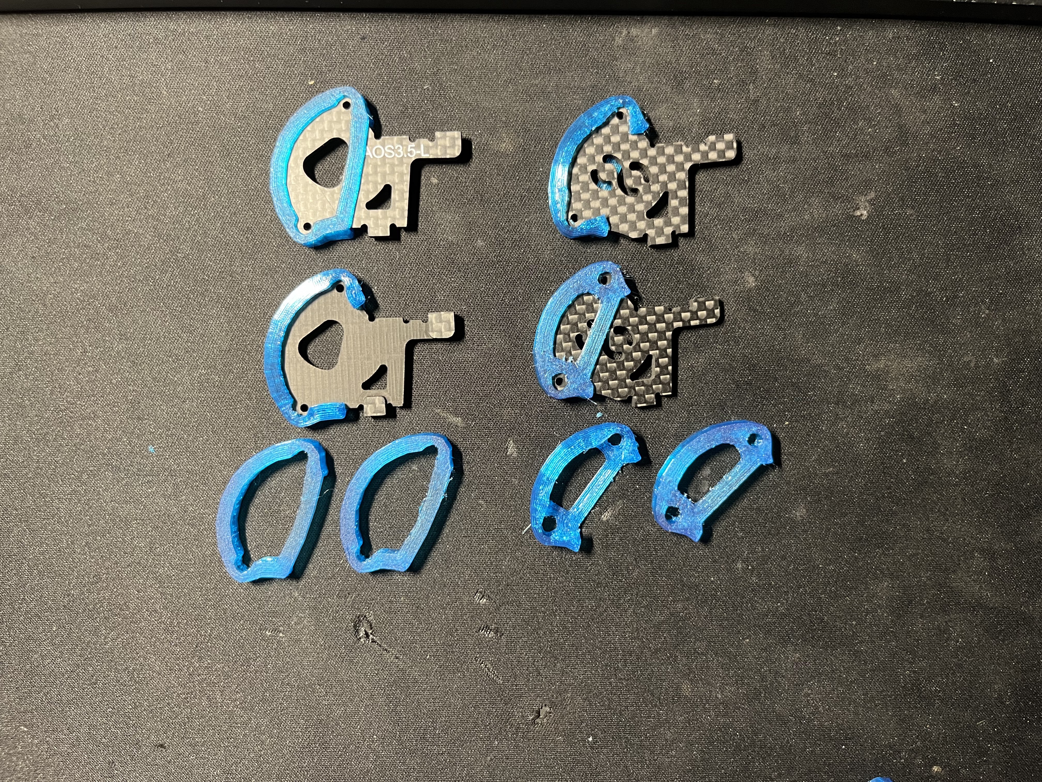Ốp bảo vệ camera cho khung AOS 3.5 O3. hai phiên bản với hai độ dày carbon khác nhau của phần khung, phần đỡ dày hơn có thanh đỡ mỏng hơn phần còn lại để có thể đặt đầu vít dưới đó nếu cần.
