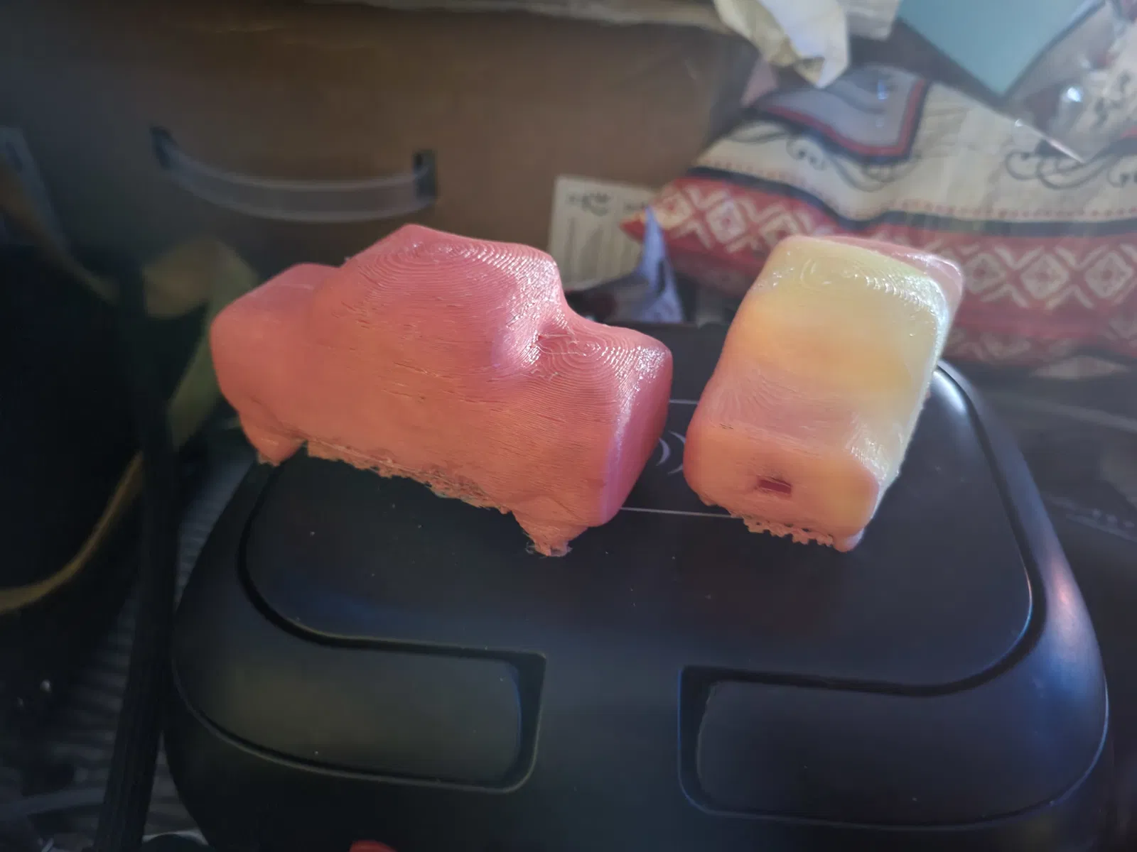 Tôi đề xuất mật độ điền đầy 10%, cần có hỗ trợ. In bằng TPU đổi màu nhạy cảm với nhiệt (cam sang vàng), để tăng thêm độ an toàn (giảm nguy cơ bị bỏng do kem nóng ngoài ý muốn*).