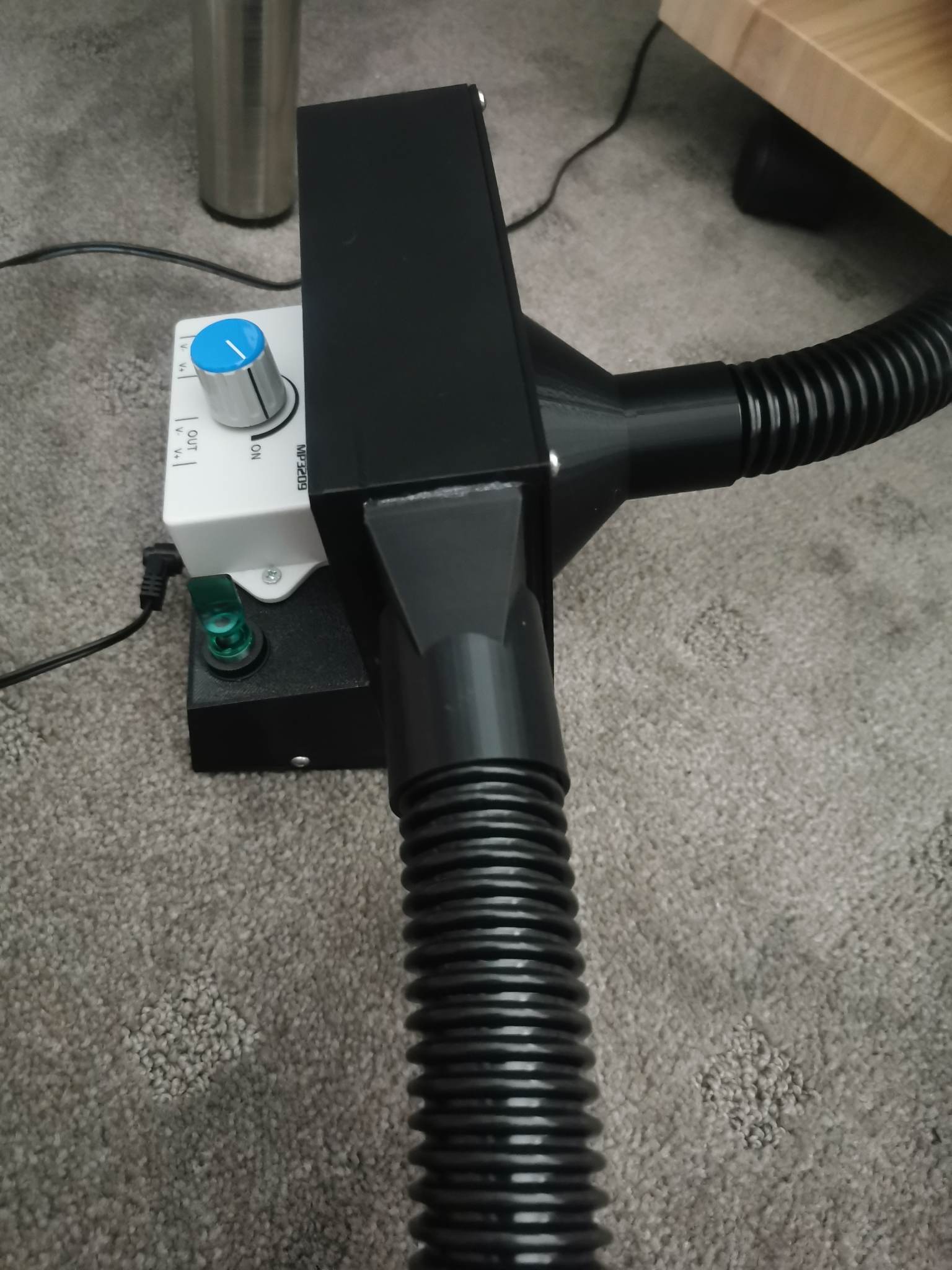 FUMEATER MÁY HÚT KHÓI LEO BÀN Xem: file pdf để biết Danh sách bộ phận và Hướng dẫn lắp ráp A MÁY HÚT KHÓI NHỎ GỌN dành cho máy in 3D Filament hoặc Resin, được chế tạo xung quanh quạt 120mm phổ biến. Tôi có một khu vực làm việc nhỏ cho các máy in của mình trong văn phòng. Tôi thích nhìn thấy những gì đang diễn ra khi in. Tôi không có đủ không gian, hoặc không thích các loại vỏ máy vì nhiều lý do, vì vậy tôi đã chế tạo một thiết bị hút khói để bàn có thể đặt bên cạnh máy in filament của tôi, giúp môi trường của tôi an toàn hơn một chút. Tôi đã chế tạo máy hút khói này xung quanh một quạt ly tâm 120mm phổ biến mà tôi có sẵn. Nó là hệ thống 12V và khá mạnh, thực tế nó gần như bay khỏi bàn, vì vậy tôi đã tích hợp Bộ điều khiển PWM DC 12V để điều chỉnh tốc độ quạt theo ý muốn. Bạn không cần làm điều này nếu bạn có quạt yếu hơn và muốn chạy nó ở 100%. NHỮNG ĐIỀU CẦN BIẾT: * Danh sách bộ phận và Hướng dẫn lắp ráp của tôi (pdf) được bao gồm để hỗ trợ, nhưng hãy điều chỉnh theo nhu cầu của bạn.