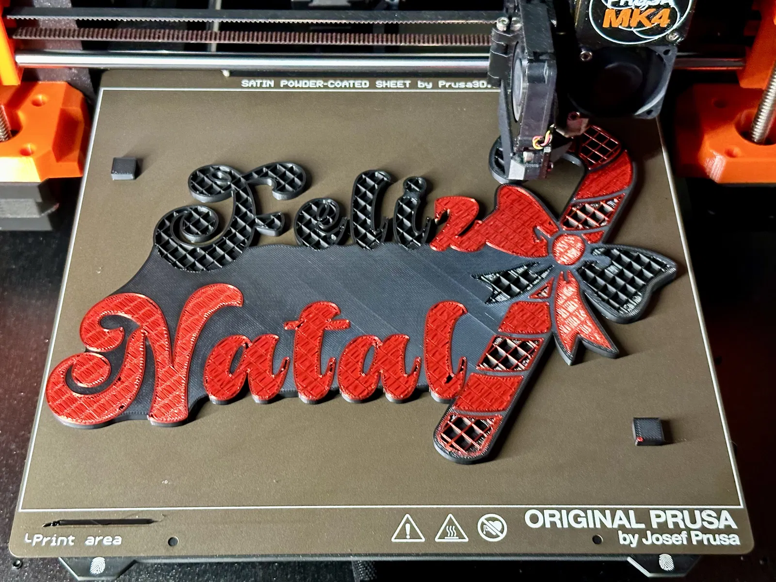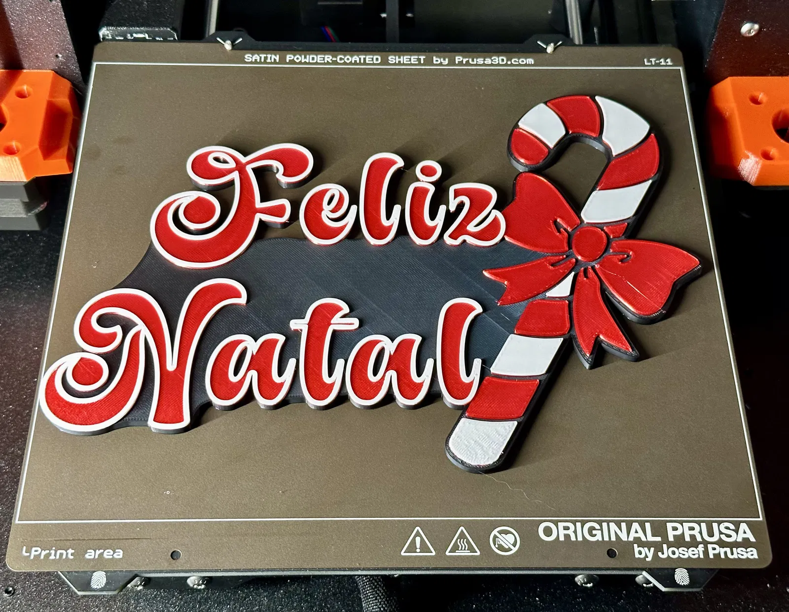 Biển báo Giáng sinh/cây kẹo 3 màu. In bằng PLA, 3 màu. Tôi đã in với cài đặt PLA PrusaSlicer mặc định.
