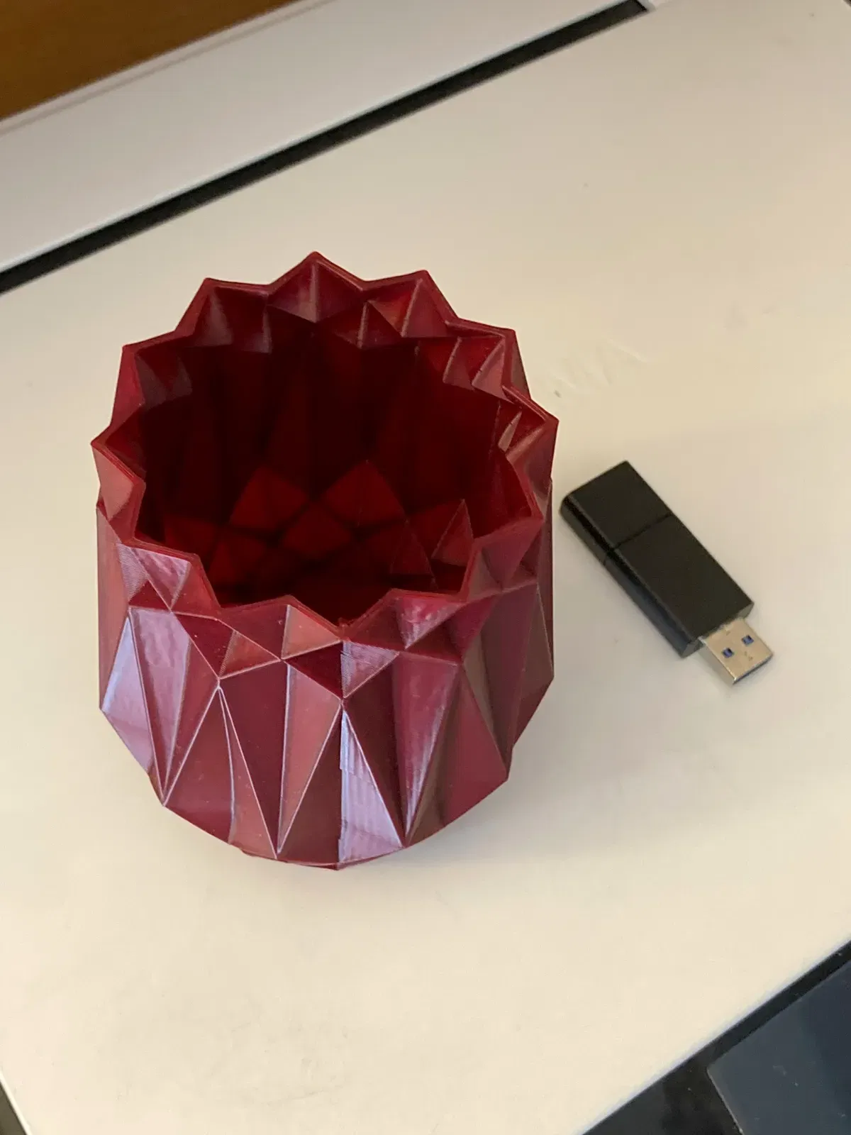 Bức ảnh cho thấy lọ được in ở chế độ thông thường với 2 lớp tường và 3 lớp đáy. Tệp stl là rắn. Nó in rất tốt ở cả chế độ lọ và chế độ bình thường.
