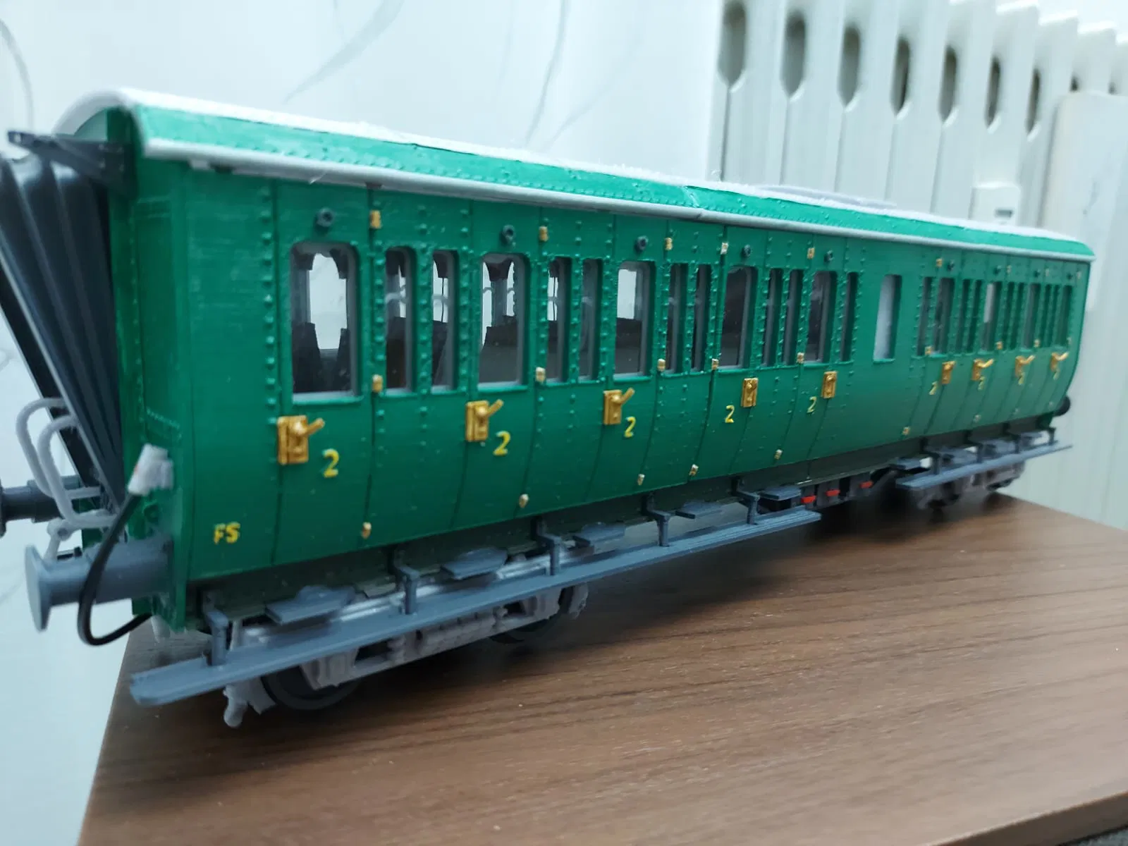 Mô hình toa xe khách centoporte, phục vụ từ những năm 1920 đến 1980 trên tuyến đường sắt quốc gia Ý. Mô hình có chi tiết ngoại thất, nội thất với 74 ghế và 2 nhà vệ sinh. Lắp ráp đơn giản chỉ cần keo dán. Kính cửa sổ làm từ nhựa trong hộp, kính nhà vệ sinh làm mờ bằng giấy nhám. Các bộ phận lớn được chia nhỏ để dễ in. Tỷ lệ tương thích với đầu máy FS691.