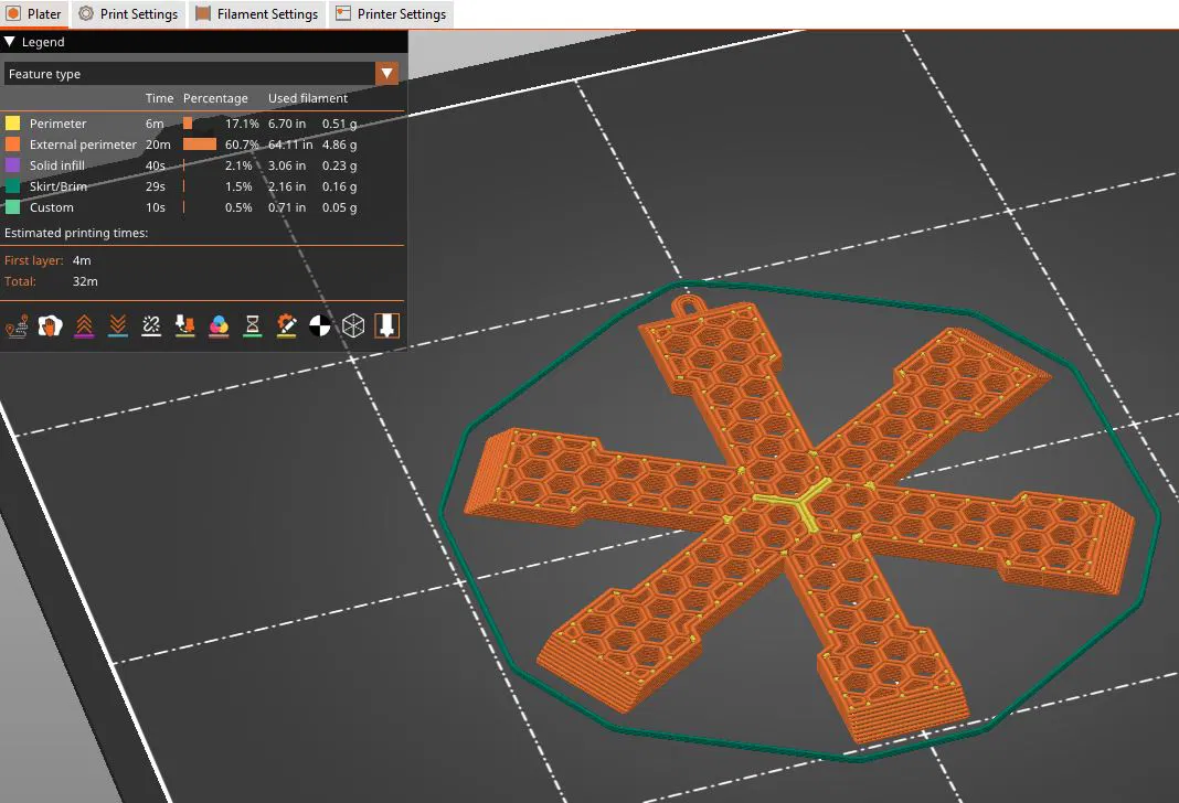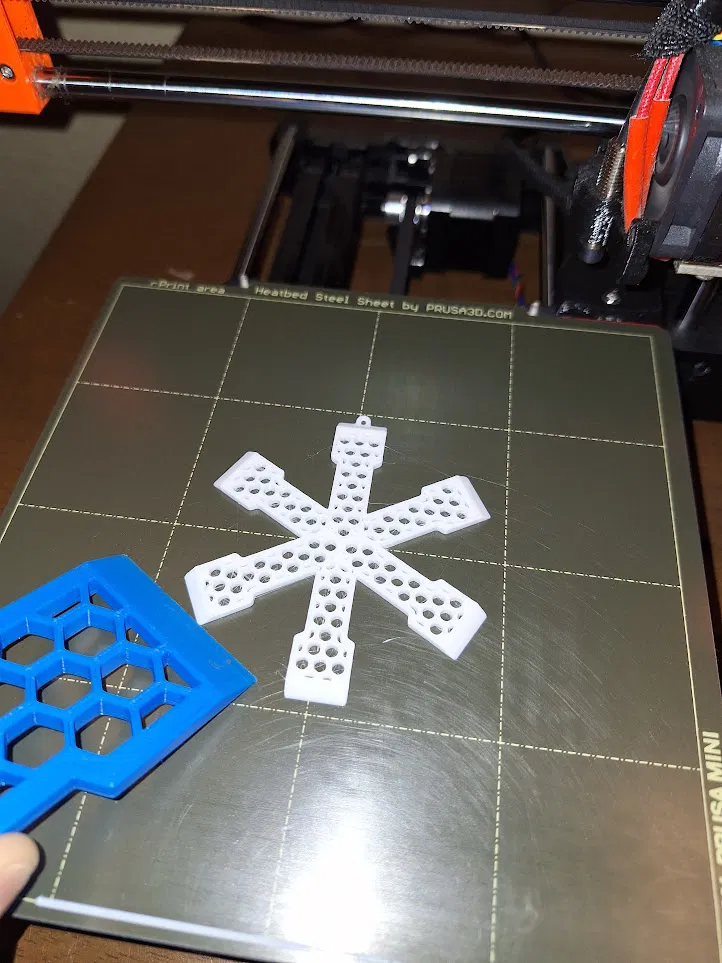 Mô hình đồ trang trí hình bông tuyết lục giác làm từ dụng cụ cạo khay in 3D, thích hợp để trang trí cây thông của bạn. Không cần vật liệu hỗ trợ, in bằng PLA, độ đặc ruột 10-15%. Sử dụng vòi phun 0.6mm ở độ phân giải 0.3mm. Dụng cụ cạo này được làm lại, không vay mượn từ bất kỳ mô hình hiện có nào. Lấy cảm hứng từ thiết kế dụng cụ cạo của @visle. https://www.f3d.vn/3d-model/157488-hexscraper-cap-ban-in-3d Chúc mừng Giáng sinh và Chúc mừng in ấn!