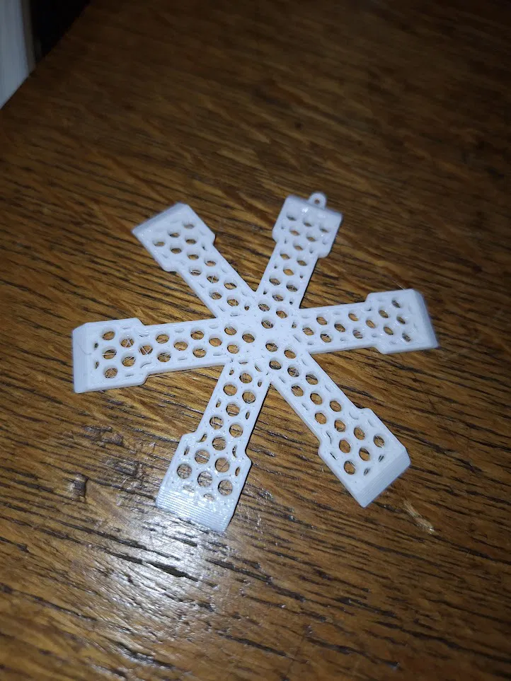 Biến chiếc dụng cụ cạo khay in 3D lục giác cổ điển thành hình bông tuyết xinh xắn để treo lên cây thông Noel. Mô hình trang trí này không cần vật liệu hỗ trợ, in bằng PLA với độ đặc ruột 10-15%.