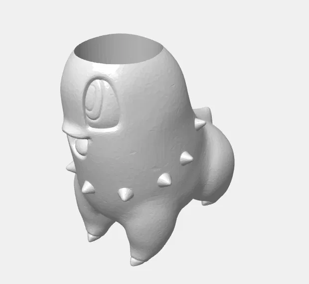 Chậu Chikorita, với hai phiên bản: có hoặc không có lỗ thoát nước. Chậu được chỉnh sửa từ mô hình có sẵn trên mạng để trở thành một chậu hoa độc đáo.