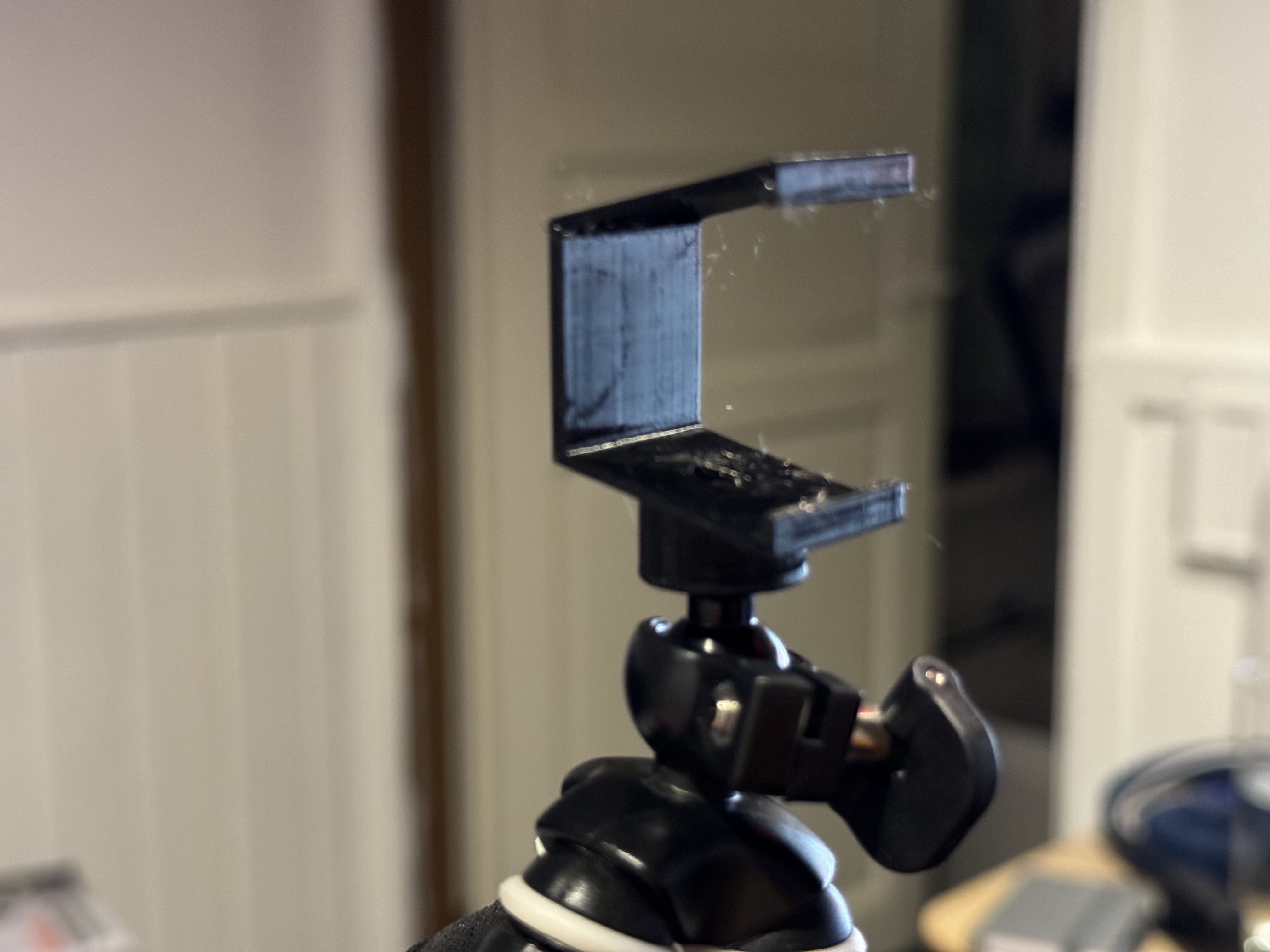 Giá đỡ cho webcam thông thường (Trust Trino HD). Có lỗ ren 1/4 " ở dưới đáy để gắn chân máy ảnh.