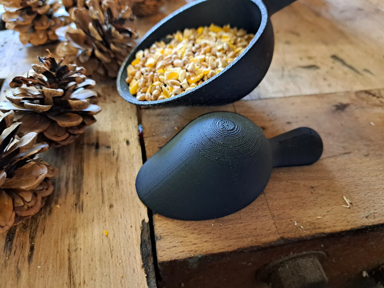 Tôi cần một muỗng cho vật liệu hạt như thức ăn cho gà.