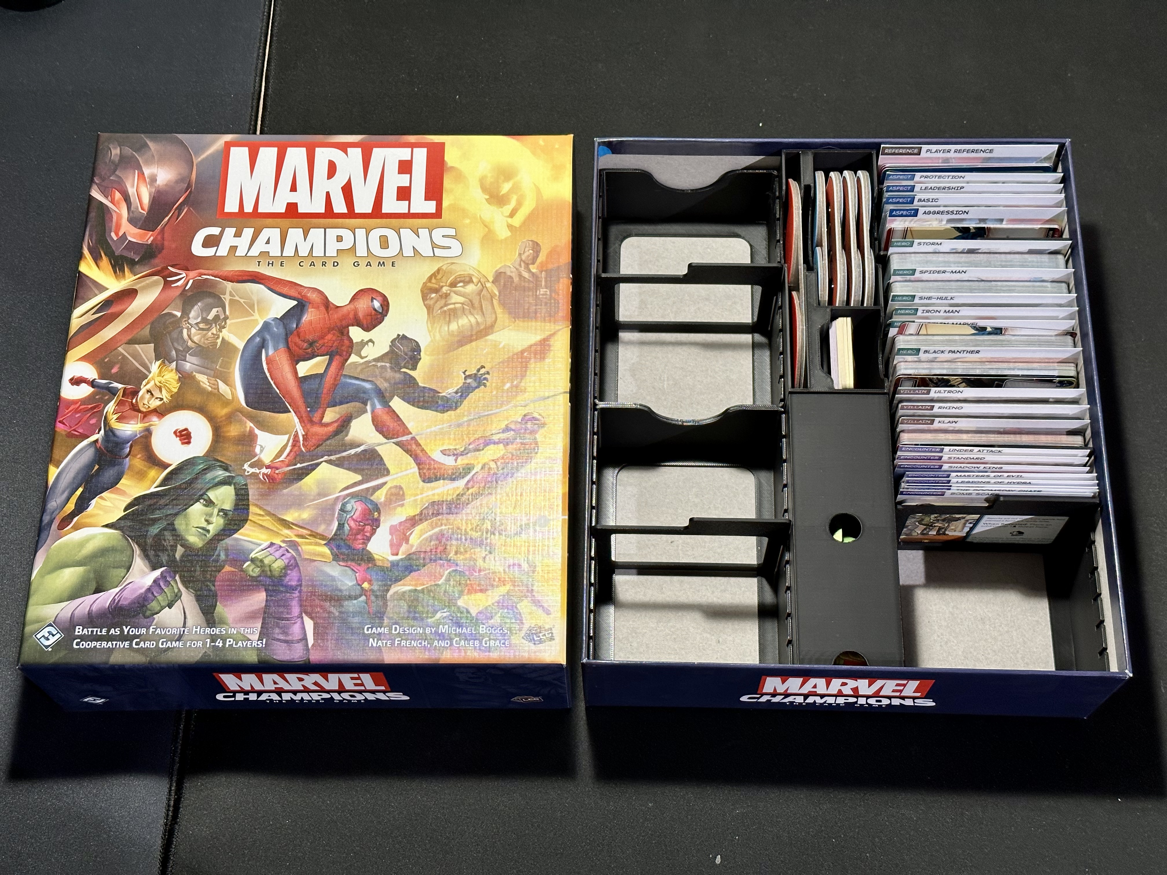 Khay thẻ bài được thiết kế lại với các vách ngăn tùy chỉnh, cung cấp nhiều ngăn chứa hơn cho Marvel Champions, Lord of the Rings: The Card Game và Arkham Horror: The Card Game. Bao gồm các vách ngăn in nhanh và không gian tùy chỉnh.