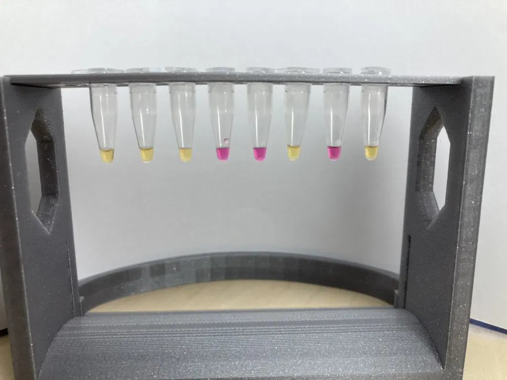 Giá đỡ ống siêu nhỏ và dải ống nghiệm 200μl. Một công cụ hữu ích để chụp ảnh các kết quả LAMP đo màu.