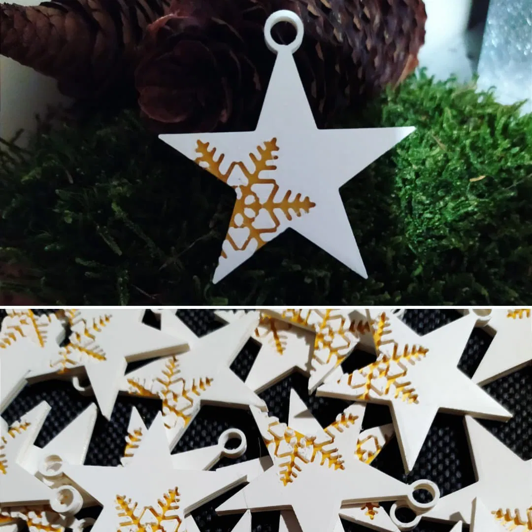 Ngôi sao với bông tuyết như một vật trang trí Giáng sinh rất đẹp. Một mô hình 3D hoàn hảo cho mùa lễ hội, bạn có thể in nó bằng máy in Prusa MK3S với chất liệu PLA và tùy chỉnh màu sắc ở lớp 0,70 để tạo hiệu ứng độc đáo.