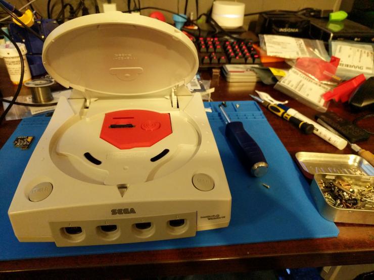 Lắp GDEMU giống như ổ đĩa gốc, sử dụng một vít ổ đĩa gốc để gắn lỗ gắn phía sau, và sử dụng một trong các vít M3x16mm để gắn vít phía trước qua bảng GDEMU vào Dreamcast.