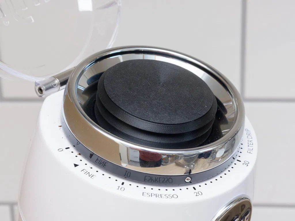 Ống thổi Niche Zero được thiết kế để vừa vặn dưới nắp. Giúp lấy ra 0.1-0.2g cà phê xay cuối cùng từ máy xay.