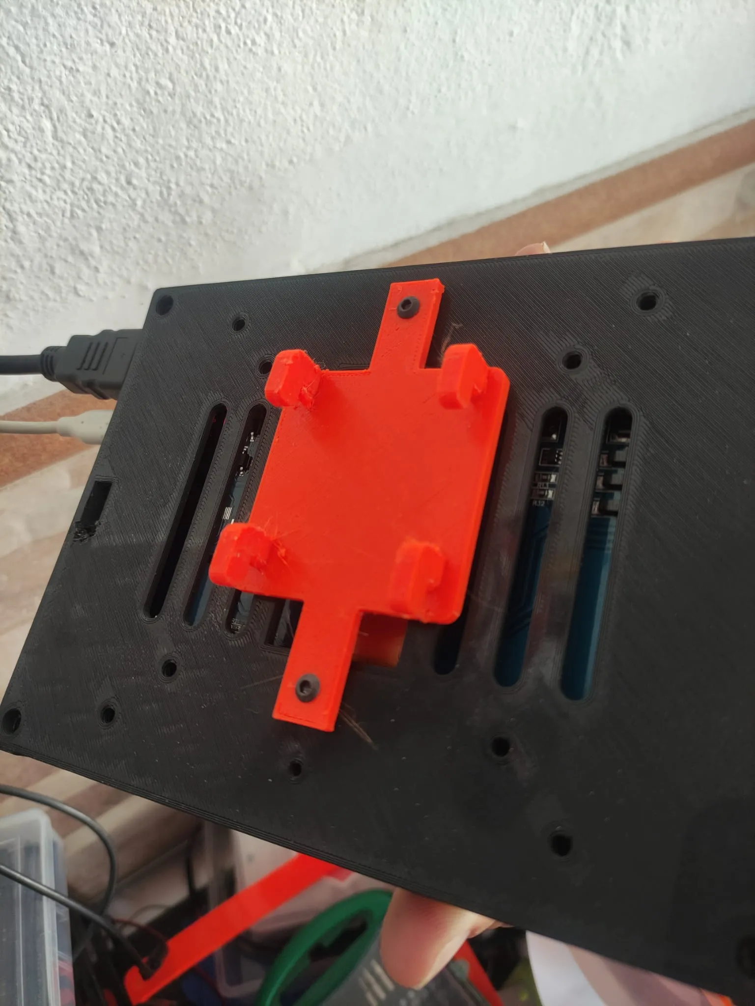 Giá đỡ màn hình cho bảng Skadis, dành cho màn hình cảm ứng HDMI 7", in bằng petgm sử dụng ốc vít m3 dài 8mm.