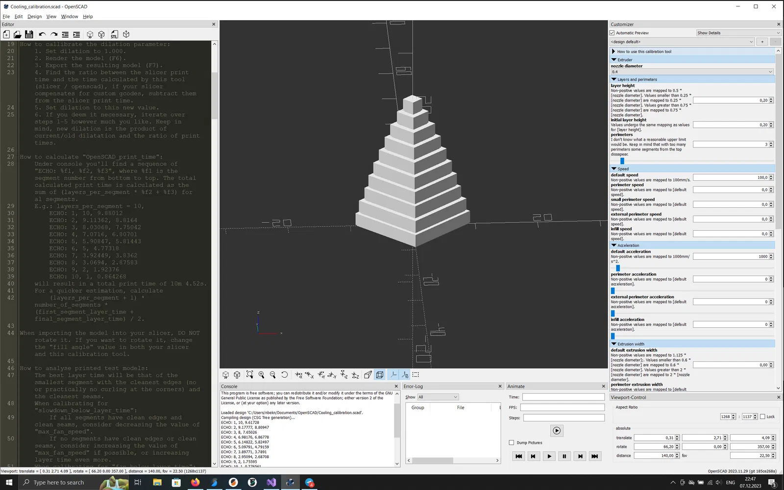 4. Tìm tỷ lệ giữa thời gian in của slicer và thời gian được tính bởi công cụ này (slicer / openscad), nếu slicer của bạn bù cho các gcode tùy chỉnh, hãy trừ chúng khỏi thời gian in của slicer.