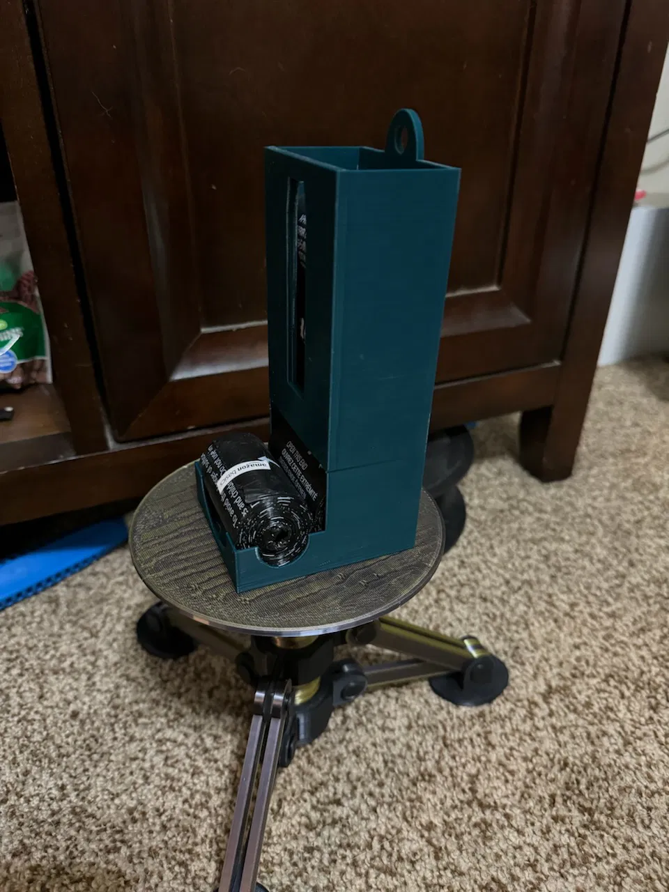 Một dụng cụ giữ túi đựng phân chó để treo gần cửa, giúp bạn không phải lục tìm hộp đựng.