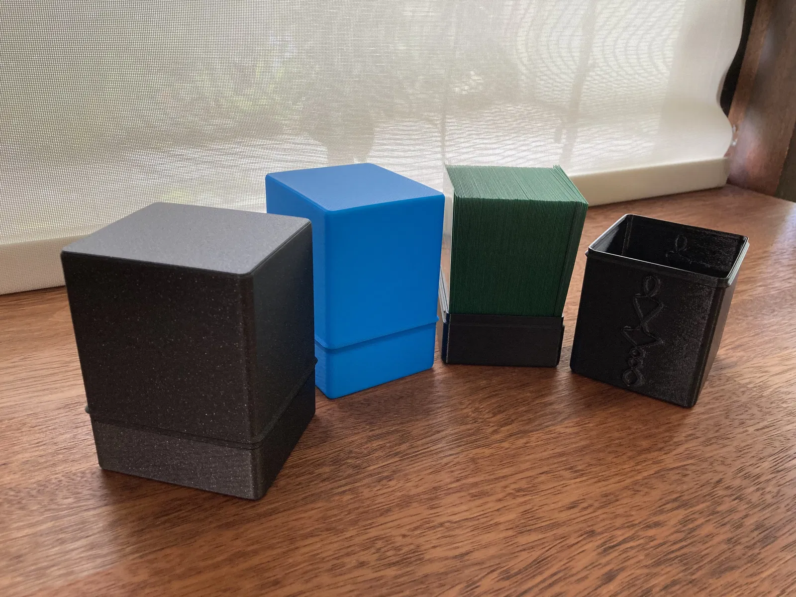 Hộp đựng bài dạng tham số này được thiết kế để chứa một bộ bài commander 100 lá MTG và in bằng chế độ lọ. Tệp Fusion360 dạng tham số cho phép tùy chỉnh nhiều yếu tố như chiều rộng, chiều dài lá bài, độ dày thành hộp, và khe hở. Các tệp 3MF cho hộp dưới, hộp trên có và không có trang trí đã được cung cấp sẵn.