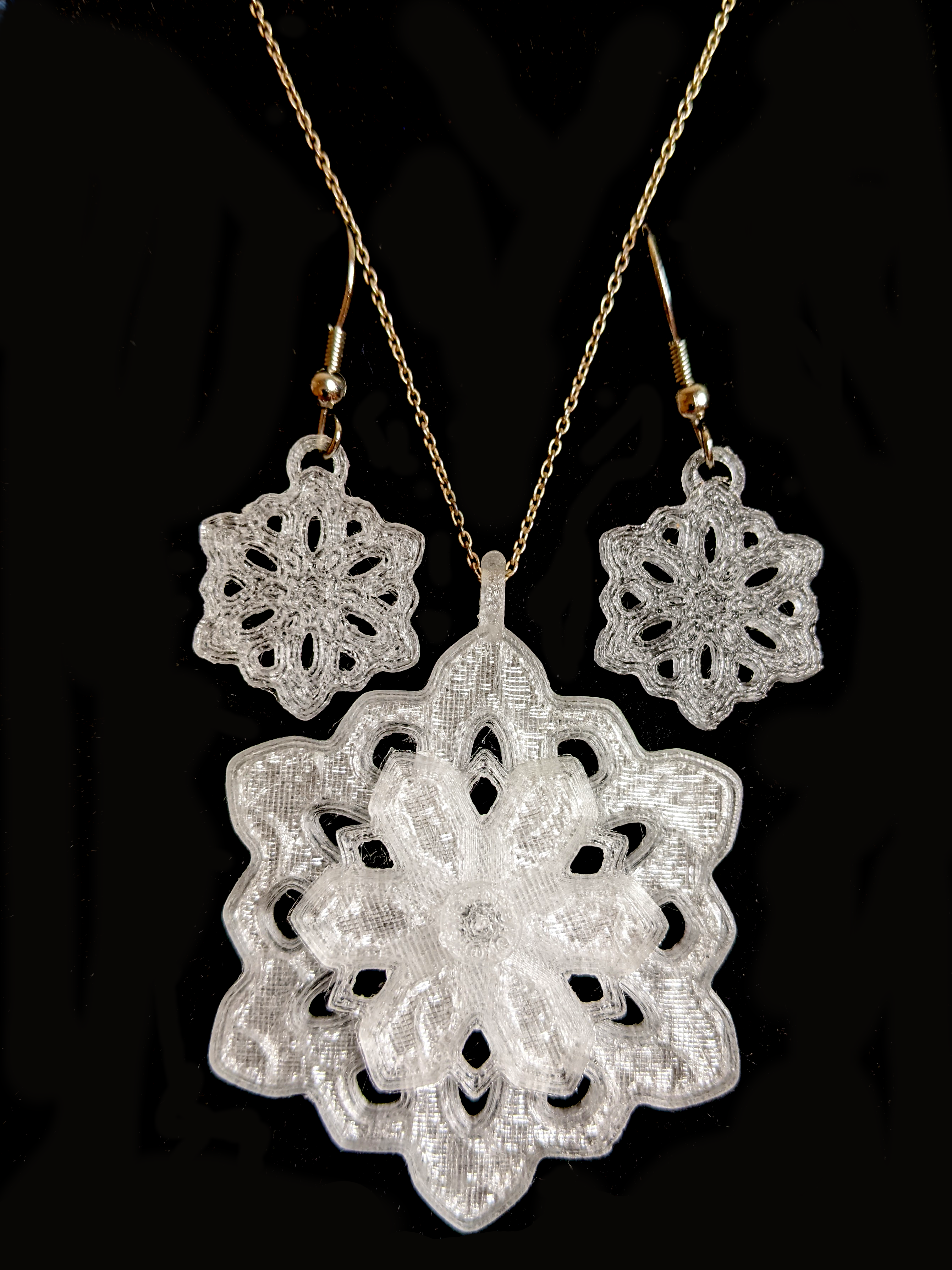 Mặt dây chuyền bông tuyết xoay và hoa tai phù hợp này rất dễ in và siêu nhẹ, đeo thoải mái cả ngày. Phần trên của mặt dây chuyền xoay, hoạt động như một món đồ chơi fidget! Hoàn hảo làm quà tặng và là một chủ đề trò chuyện thú vị.